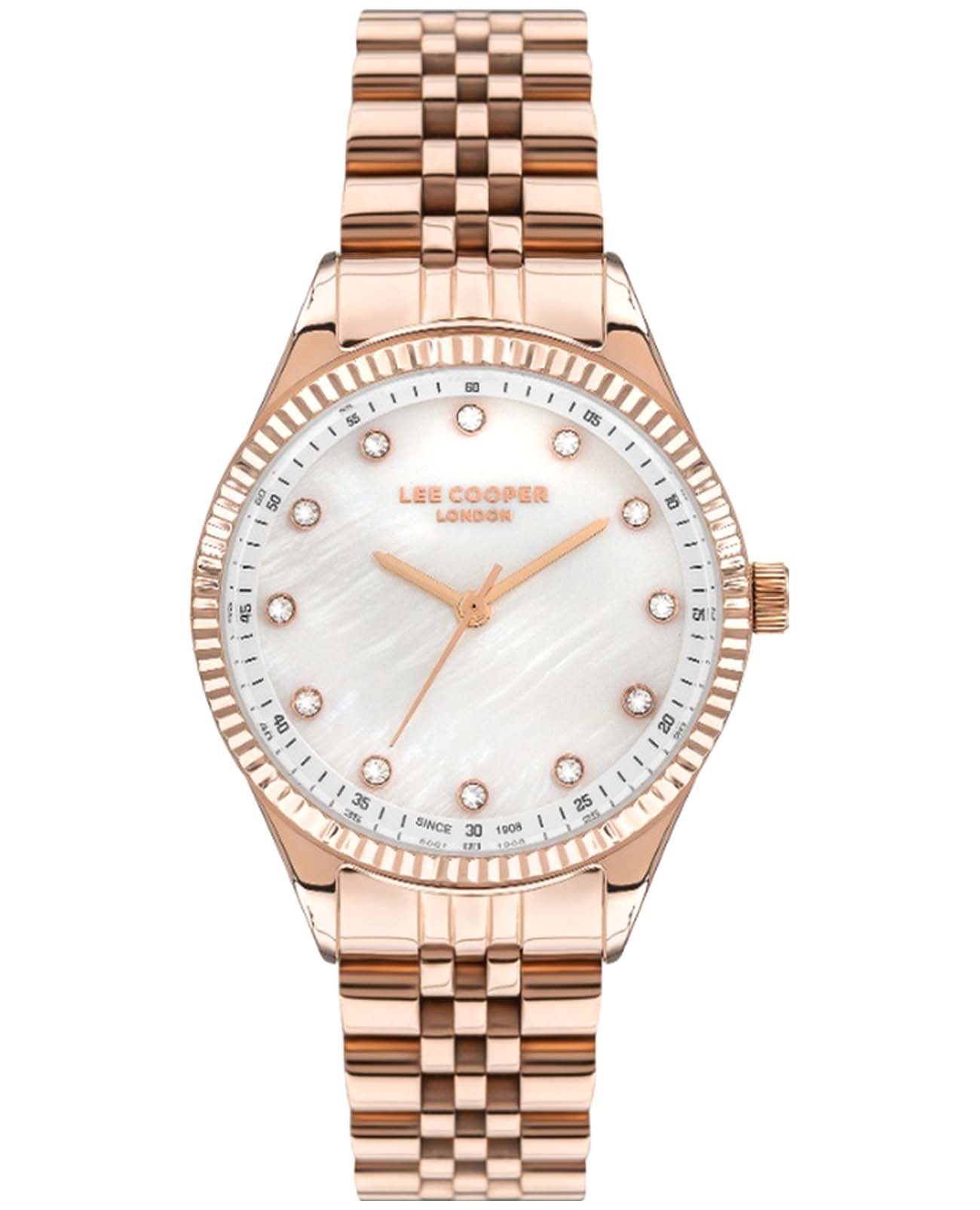 Женские наручные часы Lee Cooper LC07310.420 — это элегантная модель с утончённым дизайном. Корпус диаметром 35 мм выполнен из суперметалла с IP-покрытиемIP-покрытиеМетод ионного напыления. Демонстрирует повышенную устойчивость к истиранию, окислению и химическим веществам. Под воздействием высокого давления и температуры около 1500°C молекулы металла надёжно соединяются с частицами корпуса часов., что придаёт часам изысканный вид. Перламутровый циферблат украшен изящными вставками из циркония и стрелками, обеспечивая удобное считывание времени. Циферблат защищён минеральным стекломМинеральное стеклоМинеральное стекло представляет собой искусственно выращенный минерал кварца. Такое стекло отличается особой устойчивостью к повреждениям и царапинам. Уступает по некоторым качествам сапфировому стеклу., устойчивым к царапинам. Часы работают на кварцевом механизме, обеспечивая точность хода. Браслет из нержавеющей стали с раскладной застёжкойРаскладная застёжкаТакой тип застёжки используется только на браслетах из металла. Она никогда не раскрывается полностью, происходит разделение на 2 и более частей. Раскладывающая застёжка снизит вероятность потери часов к минимуму. гарантирует комфортное ношение и надёжную фиксацию на запястье. Водозащита 30 метров защищает часы от случайных брызг и дождя, делая их подходящими для повседневного использования.