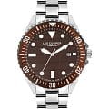 Мужские наручные часы Lee Cooper LC07541.340 — это элегантная модель, сочетающая классический стиль и функциональность. Корпус диаметром 45 мм выполнен из суперметалла, безельБезельВнешний ободок, закрепляющий стекло. В спортивных часах так называется поворотное кольцо с делениями на циферблате, выполняет роль таймера – замеряет отрезки времени на шкале. Неподвижный безель – элемент декора. Однонаправленно вращающийся безель на дайверских часах позволяет фиксировать моменты погружения и выныривания на поверхность. из нержавеющей стали с IP-покрытиемIP-покрытиеМетод ионного напыления. Демонстрирует повышенную устойчивость к истиранию, окислению и химическим веществам. Под воздействием высокого давления и температуры около 1500°C молекулы металла надёжно соединяются с частицами корпуса часов. обеспечивает долговечность и надежность. Коричневый циферблат дополнен индикаторами даты и дня недели, что делает модель удобной для ежедневного использования. Стрелки и метки покрыты люминесцентным покрытиемЛюминесцентное покрытиеПозволяет считывать показания времени в темноте. Производители наносят на стрелки, часовые индексы, безель или поверхность циферблата светонакопительный состав, дающий холодное свечение., обеспечивающим отличную читаемость в темноте. Циферблат защищён минеральным стекломМинеральное стеклоМинеральное стекло представляет собой искусственно выращенный минерал кварца. Такое стекло отличается особой устойчивостью к повреждениям и царапинам. Уступает по некоторым качествам сапфировому стеклу., устойчивым к царапинам. Часы работают на надёжном кварцевом механизме. Браслет из нержавеющей стали с раскладной застёжкойРаскладная застёжкаТакой тип застёжки используется только на браслетах из металла. Она никогда не раскрывается полностью, происходит разделение на 2 и более частей. Раскладывающая застёжка снизит вероятность потери часов к минимуму. гарантирует удобную посадку на запястье. Водозащита 50 метров защищает механизм от влаги, позволяя не беспокоиться о случайных контактах с водой.