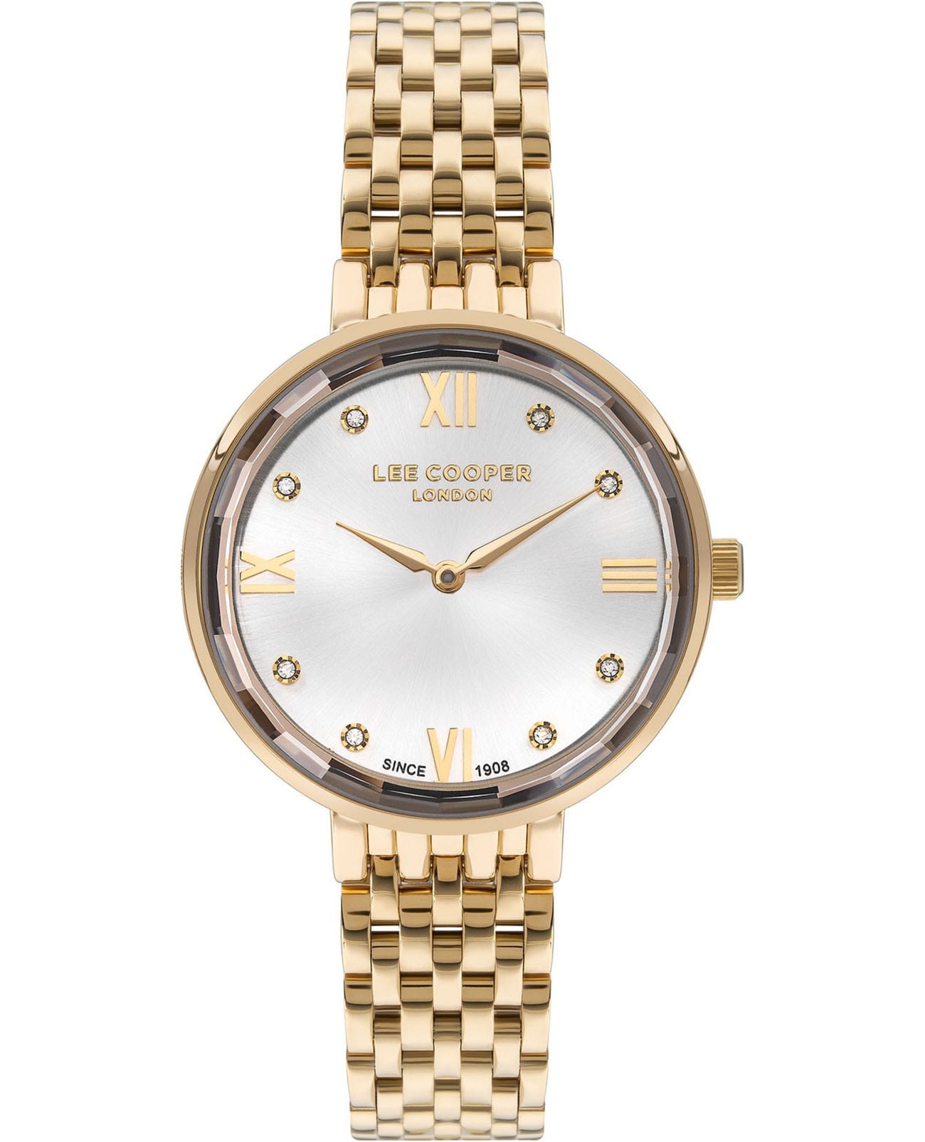 Женские кварцевые часы Lee Cooper LC07610.130 — это классический аксессуар с элегантным декором. Корпус диаметром 34 мм выполнен из суперметалла с IP-покрытиемIP-покрытиеМетод ионного напыления. Демонстрирует повышенную устойчивость к истиранию, окислению и химическим веществам. Под воздействием высокого давления и температуры около 1500°C молекулы металла надёжно соединяются с частицами корпуса часов. жёлтого золота. Циферблат серебристого цвета украшен индексами, римскими цифрами и вставками из камней, придающими сияние и изысканность. Циферблат защищён минеральным стекломМинеральное стеклоМинеральное стекло представляет собой искусственно выращенный минерал кварца. Такое стекло отличается особой устойчивостью к повреждениям и царапинам. Уступает по некоторым качествам сапфировому стеклу.. Часы оснащены стальным браслетом с IP-покрытиемIP-покрытиеМетод ионного напыления. Демонстрирует повышенную устойчивость к истиранию, окислению и химическим веществам. Под воздействием высокого давления и температуры около 1500°C молекулы металла надёжно соединяются с частицами корпуса часов. жёлтого золота на раскладной застёжкеРаскладная застёжкаТакой тип застёжки используется только на браслетах из металла. Она никогда не раскрывается полностью, происходит разделение на 2 и более частей. Раскладывающая застёжка снизит вероятность потери часов к минимуму.. Водонепроницаемость 30 м позволяет использовать часы в повседневных условиях, защищая от случайных брызг и капель дождя. Сочетание классического стиля и детального исполнения делает эти часы универсальным выбором на каждый день.