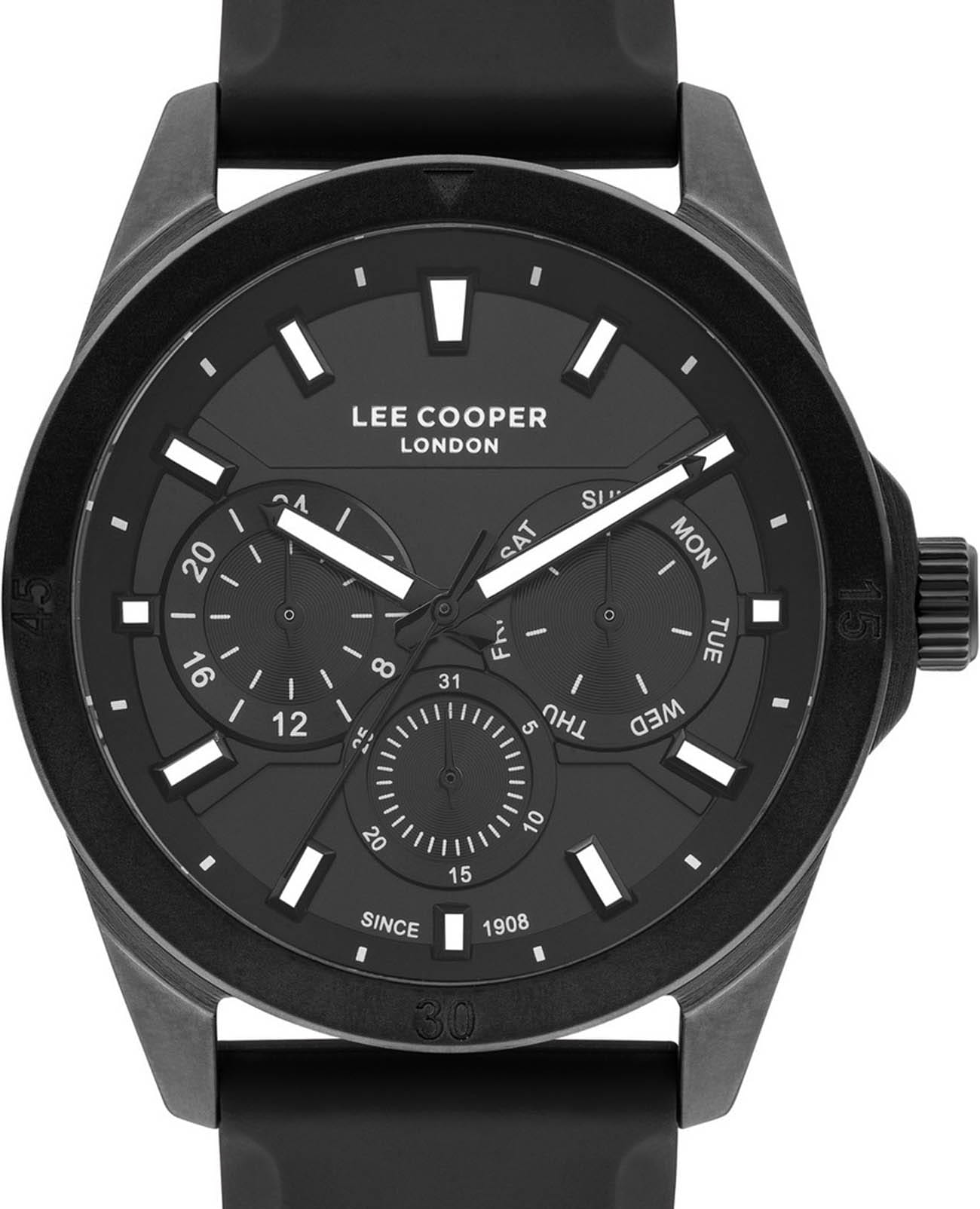 Мужские кварцевые часы Lee Cooper LC07626.651 — это мультифункциональный аксессуар с лаконичным дизайном. Корпус диаметром 46 мм выполнен из суперметалла с IP-покрытиемIP-покрытиеМетод ионного напыления. Демонстрирует повышенную устойчивость к истиранию, окислению и химическим веществам. Под воздействием высокого давления и температуры около 1500°C молекулы металла надёжно соединяются с частицами корпуса часов. в двухцветном исполнении — сером и чёрном. Циферблат чёрного цвета оформлен индексами и дополнен окошками даты, дня недели и 24-часового индикатора. Циферблат защищён минеральным стекломМинеральное стеклоМинеральное стекло представляет собой искусственно выращенный минерал кварца. Такое стекло отличается особой устойчивостью к повреждениям и царапинам. Уступает по некоторым качествам сапфировому стеклу.. Стрелки и метки с люминесцентным покрытиемЛюминесцентное покрытиеПозволяет считывать показания времени в темноте. Производители наносят на стрелки, часовые индексы, безель или поверхность циферблата светонакопительный состав, дающий холодное свечение., обеспечивающим хорошую читаемость в темноте. Часы оснащены каучуковым ремешком чёрного цвета с классической пряжкой. Водонепроницаемость 50 м позволяет использовать часы для плавания и повседневного ношения. Универсальный выбор для тех, кто ценит функциональность и надёжность.