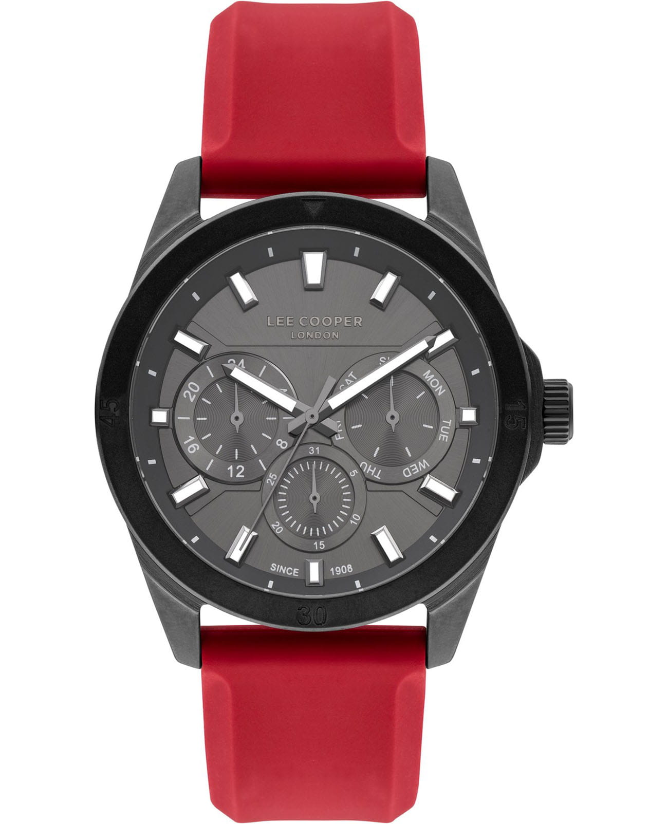 Мужские кварцевые часы Lee Cooper LC07626.668 — это мультифункциональный аксессуар с лаконичным дизайном. Корпус диаметром 46 мм выполнен из суперметалла с IP-покрытиемIP-покрытиеМетод ионного напыления. Демонстрирует повышенную устойчивость к истиранию, окислению и химическим веществам. Под воздействием высокого давления и температуры около 1500°C молекулы металла надёжно соединяются с частицами корпуса часов. в двухцветном исполнении — сером и чёрном. Циферблат серого цвета оформлен индексами и дополнен окошками даты, дня недели и 24-часового индикатора. Циферблат защищён минеральным стекломМинеральное стеклоМинеральное стекло представляет собой искусственно выращенный минерал кварца. Такое стекло отличается особой устойчивостью к повреждениям и царапинам. Уступает по некоторым качествам сапфировому стеклу.. Стрелки и метки с люминесцентным покрытиемЛюминесцентное покрытиеПозволяет считывать показания времени в темноте. Производители наносят на стрелки, часовые индексы, безель или поверхность циферблата светонакопительный состав, дающий холодное свечение., обеспечивающим хорошую читаемость в темноте. Часы оснащены каучуковым ремешком красного цвета с классической пряжкой. Водонепроницаемость 50 м позволяет использовать часы для плавания и повседневного ношения. Универсальный выбор для тех, кто ценит функциональность и надёжность.
