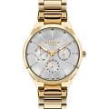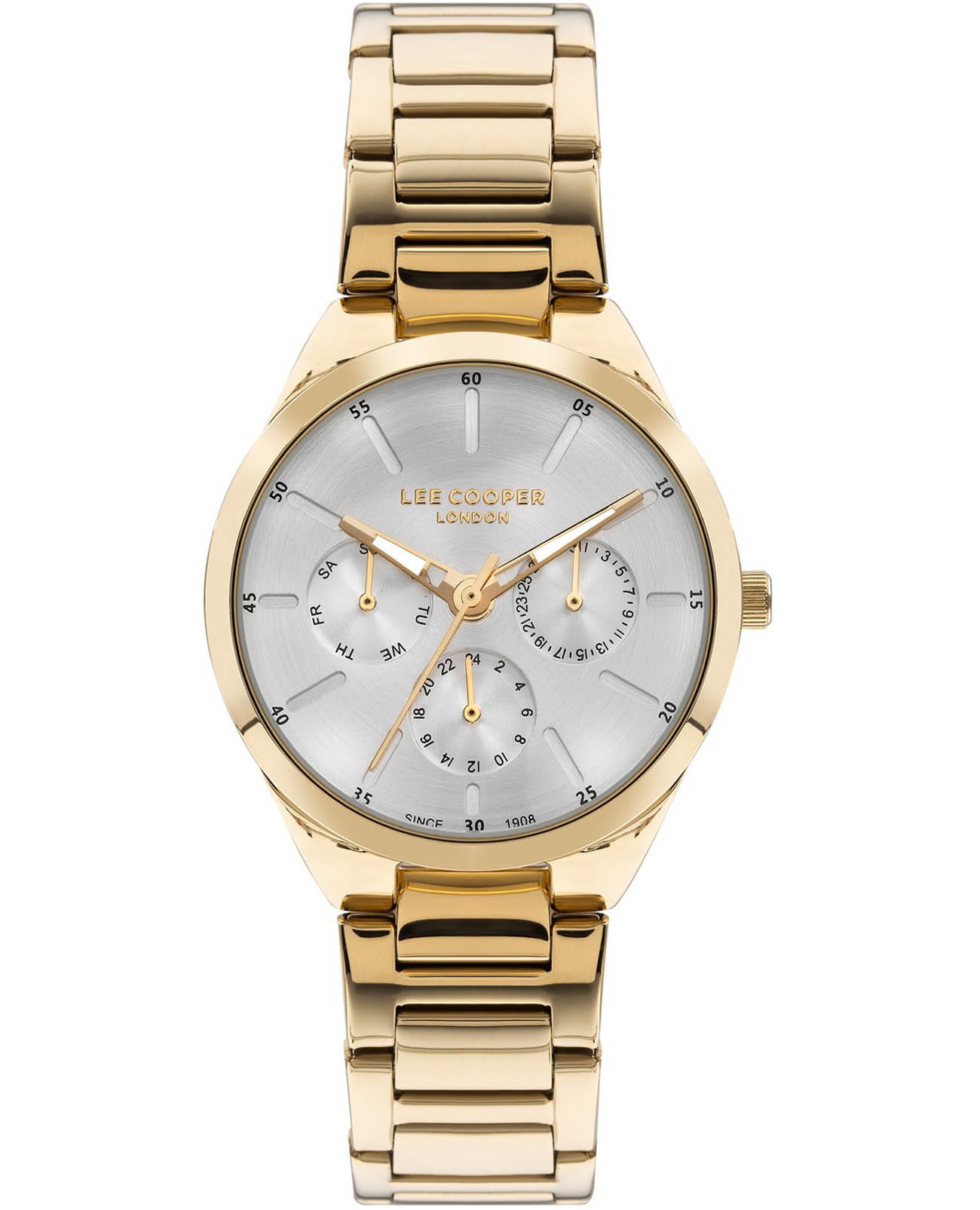 Женские часы Lee Cooper LC07643.130 — это стильное сочетание элегантности и современного дизайна. Круглый корпус диаметром 36 мм выполнен из суперметалла с IP-покрытиемIP-покрытиеМетод ионного напыления. Демонстрирует повышенную устойчивость к истиранию, окислению и химическим веществам. Под воздействием высокого давления и температуры около 1500°C молекулы металла надёжно соединяются с частицами корпуса часов. золотого цвета, придающий модели особый блеск. Серебристый циферблат защищен минеральным стекломМинеральное стеклоМинеральное стекло представляет собой искусственно выращенный минерал кварца. Такое стекло отличается особой устойчивостью к повреждениям и царапинам. Уступает по некоторым качествам сапфировому стеклу., обеспечивающим устойчивость к царапинам. Часы оснащены надежным кварцевым механизмом, а стальной браслет с IP-покрытиемIP-покрытиеМетод ионного напыления. Демонстрирует повышенную устойчивость к истиранию, окислению и химическим веществам. Под воздействием высокого давления и температуры около 1500°C молекулы металла надёжно соединяются с частицами корпуса часов. на раскладной застёжкеРаскладная застёжкаТакой тип застёжки используется только на браслетах из металла. Она никогда не раскрывается полностью, происходит разделение на 2 и более частей. Раскладывающая застёжка снизит вероятность потери часов к минимуму. гарантирует комфортную посадку на запястье. Мультифункциональная модель с индикацией даты, дня недели, с дополнительным 24-х часовым индикатором. Стрелки с люминесцентным покрытиемЛюминесцентное покрытиеПозволяет считывать показания времени в темноте. Производители наносят на стрелки, часовые индексы, безель или поверхность циферблата светонакопительный состав, дающий холодное свечение. позволяют легко считывать время даже в условиях недостаточного освещения. Водозащита 30 метров защищает модель от случайных брызг и дождя. Lee Cooper — отличный выбор для тех, кто ценит утонченность и качество.
