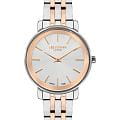 Женские часы Lee Cooper LC07684.530 выполнены в классическом стиле и отличаются лаконичным дизайном и надёжностью. Модель оснащена кварцевым механизмом, обеспечивающим точность хода и минимальное обслуживание. Корпус круглой формы имеет размер 34 мм, изготовлен из суперметалла, а также дополнен минеральным стеклом. Минеральное стеклоМинеральное стеклоМинеральное стекло представляет собой искусственно выращенный минерал кварца. Такое стекло отличается особой устойчивостью к повреждениям и царапинам. Уступает по некоторым качествам сапфировому стеклу., устойчивое к мелким повреждениям. Часы имеют браслет из нержавеющей стали с раскладной застёжкойРаскладная застёжкаТакой тип застёжки используется только на браслетах из металла. Она никогда не раскрывается полностью, происходит разделение на 2 и более частей. Раскладывающая застёжка снизит вероятность потери часов к минимуму. с частичным IP-покрытиемIP-покрытиеМетод ионного напыления. Демонстрирует повышенную устойчивость к истиранию, окислению и химическим веществам. Под воздействием высокого давления и температуры около 1500°C молекулы металла надёжно соединяются с частицами корпуса часов. цвета розового золота, устойчивым к возникновению аллергических реакций, благодаря использованию качественных материалов. Циферблат оформлен с применением лаконичных индексов, а показания времени ограничиваются часовой и минутной стрелками — это делает дизайн строгим и функциональным. Благодаря отсутствию лишних деталей модель подходит как аксессуар на каждый день. Часы имеют базовый уровень водозащиты 3 АТМ , что позволяет использовать их в повседневных условиях без риска повреждения от случайных брызг воды или дождя. Это идеальный выбор для тех, кто ценит классический стиль, точность механизма и качество материалов в одном аксессуаре.