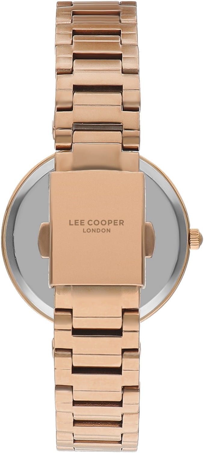 Женские часы Lee Cooper LC07711.410 — это стильное сочетание элегантности и современного дизайна. Круглый корпус диаметром 35 мм выполнен из суперметалла с IP-покрытиемIP-покрытиеМетод ионного напыления. Демонстрирует повышенную устойчивость к истиранию, окислению и химическим веществам. Под воздействием высокого давления и температуры около 1500°C молекулы металла надёжно соединяются с частицами корпуса часов. золотого цвета, придающий модели особый блеск. Изысканный циферблат защищен минеральным стекломМинеральное стеклоМинеральное стекло представляет собой искусственно выращенный минерал кварца. Такое стекло отличается особой устойчивостью к повреждениям и царапинам. Уступает по некоторым качествам сапфировому стеклу., обеспечивающим устойчивость к царапинам. Метки в виде штрихов. Часы оснащены надежным кварцевым механизмом, а стальной браслет с IP-покрытиемIP-покрытиеМетод ионного напыления. Демонстрирует повышенную устойчивость к истиранию, окислению и химическим веществам. Под воздействием высокого давления и температуры около 1500°C молекулы металла надёжно соединяются с частицами корпуса часов. на раскладной застёжкеРаскладная застёжкаТакой тип застёжки используется только на браслетах из металла. Она никогда не раскрывается полностью, происходит разделение на 2 и более частей. Раскладывающая застёжка снизит вероятность потери часов к минимуму. гарантирует комфортную посадку на запястье. Водозащита 30 метров защищает модель от случайных брызг и дождя. Lee Cooper — отличный выбор для тех, кто ценит утонченность и качество.