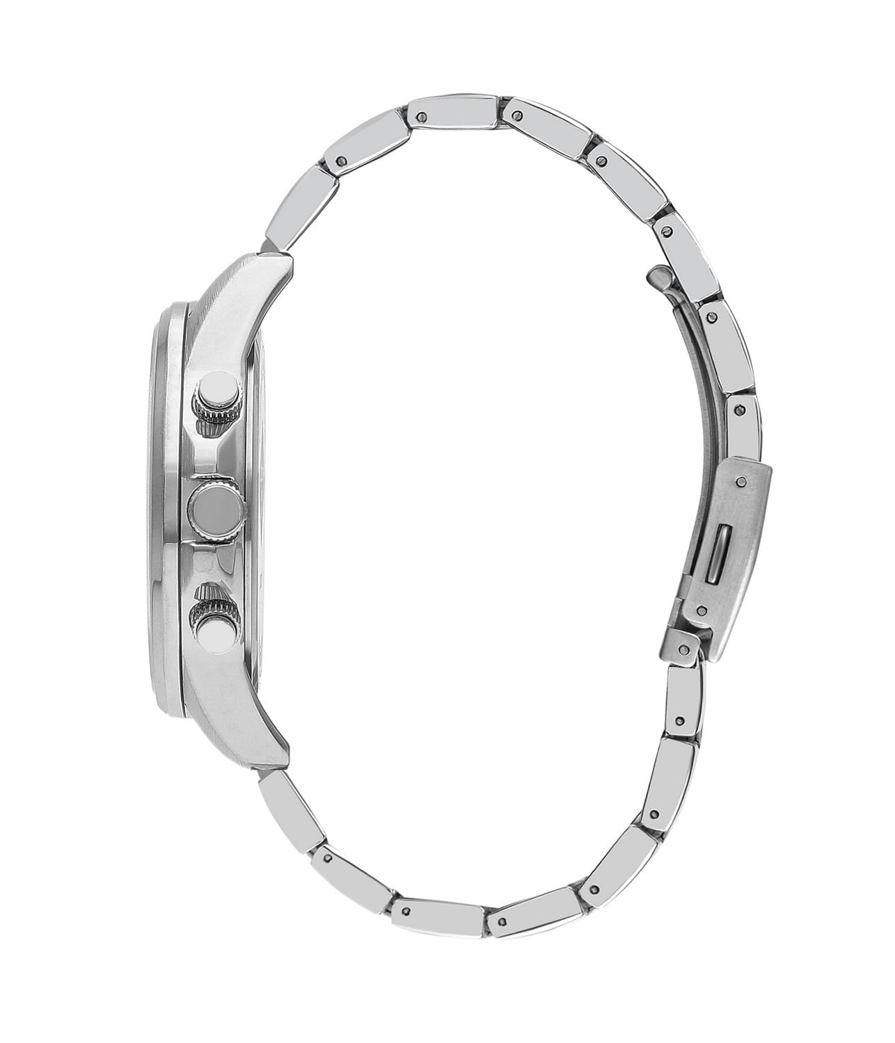 Lee Cooper LC07817.380  — элегантная модель с функциональными возможностями для повседневного использования. Корпус из суперметалла и диаметром 45 мм придаёт часам классический и современный вид. Циферблат защищён минеральным стекломМинеральное стеклоМинеральное стекло представляет собой искусственно выращенный минерал кварца. Такое стекло отличается особой устойчивостью к повреждениям и царапинам. Уступает по некоторым качествам сапфировому стеклу., устойчивым к царапинам, хорошо может выдержать небольшие удары и падения. Стильный циферблат оформлен изысканными индексами и дополнен окошками даты, дня недели и 24-часового индикатора, а также аккуратными метками и стрелками с люминесцентным покрытиемЛюминесцентное покрытиеПозволяет считывать показания времени в темноте. Производители наносят на стрелки, часовые индексы, безель или поверхность циферблата светонакопительный состав, дающий холодное свечение., что гарантирует читаемость даже в условиях недостаточного освещения. Часы работают на кварцевом механизме, обеспечивающем точность хода. Стальной браслет на раскладной застёжкеРаскладная застёжкаТакой тип застёжки используется только на браслетах из металла. Она никогда не раскрывается полностью, происходит разделение на 2 и более частей. Раскладывающая застёжка снизит вероятность потери часов к минимуму. гарантирует удобную посадку и надёжную фиксацию на запястье. Водозащита 50 метров защищает часы от брызг и дождя, делая их подходящими для повседневного использования.