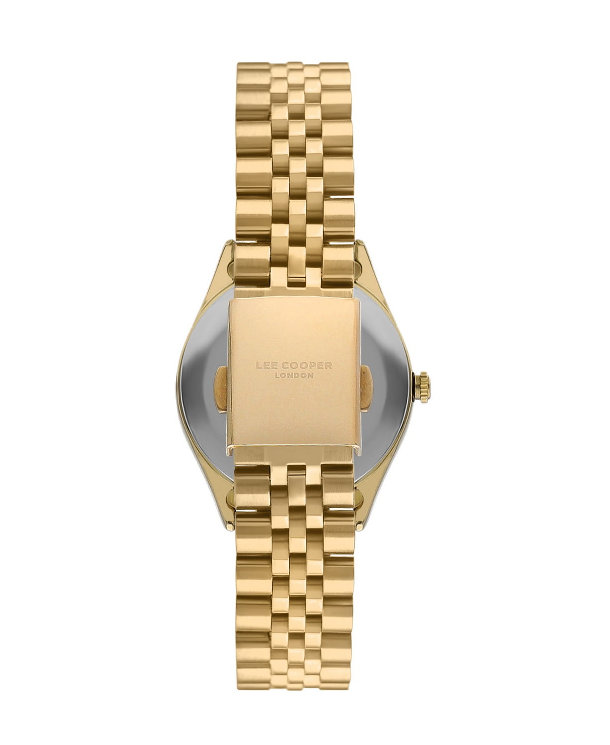 Женские часы Lee Cooper LC07818.130 выполнены в классическом стиле и сочетают строгий дизайн с надёжным механизмом. Модель оснащена кварцевым механизмом , обеспечивающим точность хода и минимальное обслуживание. Корпус круглой формы имеет размер 33 мм, изготовлен из суперметалла с IP-покрытиемIP-покрытиеМетод ионного напыления. Демонстрирует повышенную устойчивость к истиранию, окислению и химическим веществам. Под воздействием высокого давления и температуры около 1500°C молекулы металла надёжно соединяются с частицами корпуса часов. золотистого цвета, гарантирует комфорт при ношении. Циферблат серебристого цвета дополнен изысканными вставками из циркона для чёткого отсчёта времени. Защиту циферблата обеспечивает минеральное стеклоМинеральное стеклоМинеральное стекло представляет собой искусственно выращенный минерал кварца. Такое стекло отличается особой устойчивостью к повреждениям и царапинам. Уступает по некоторым качествам сапфировому стеклу., устойчивое к мелким механическим повреждениям. Стальной браслет с IP-покрытиемIP-покрытиеМетод ионного напыления. Демонстрирует повышенную устойчивость к истиранию, окислению и химическим веществам. Под воздействием высокого давления и температуры около 1500°C молекулы металла надёжно соединяются с частицами корпуса часов. на раскладной застёжкеРаскладная застёжкаТакой тип застёжки используется только на браслетах из металла. Она никогда не раскрывается полностью, происходит разделение на 2 и более частей. Раскладывающая застёжка снизит вероятность потери часов к минимуму. гарантирует удобную посадку и надёжную фиксацию на запястье. Водозащита 30WR позволяет использовать часы в повседневных условиях без риска повреждения от случайных брызг воды. Это сочетание классического дизайна, прочности материалов и качества исполнения для уверенных в себе женщин.