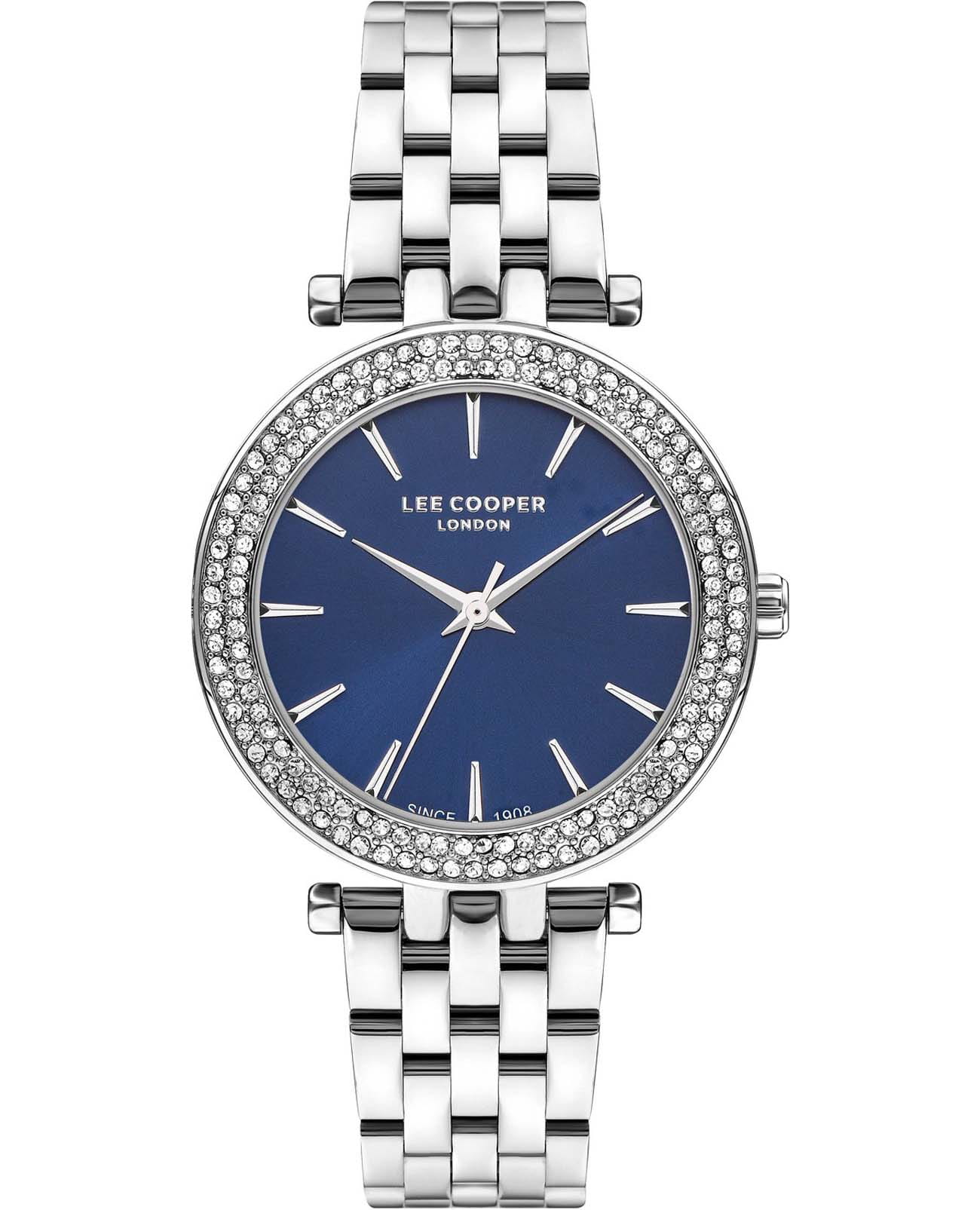 Женские часы Lee Cooper LC07864.390 — это стильное сочетание элегантности и современного дизайна. Круглый корпус диаметром 34 мм выполнен из суперметалла, а неподвижный безельБезельВнешний ободок, закрепляющий стекло. В спортивных часах так называется поворотное кольцо с делениями на циферблате, выполняет роль таймера – замеряет отрезки времени на шкале. Неподвижный безель – элемент декора. Однонаправленно вращающийся безель на дайверских часах позволяет фиксировать моменты погружения и выныривания на поверхность. инкрустирован 140 фианитами, придающими модели особый блеск. Синий циферблат защищен минеральным стекломМинеральное стеклоМинеральное стекло представляет собой искусственно выращенный минерал кварца. Такое стекло отличается особой устойчивостью к повреждениям и царапинам. Уступает по некоторым качествам сапфировому стеклу., обеспечивающим устойчивость к царапинам. Метки в виде штрихов. Часы оснащены надежным кварцевым механизмом, а стальной браслет на раскладной застёжкеРаскладная застёжкаТакой тип застёжки используется только на браслетах из металла. Она никогда не раскрывается полностью, происходит разделение на 2 и более частей. Раскладывающая застёжка снизит вероятность потери часов к минимуму. гарантирует комфортную посадку на запястье. Водозащита 30 метров защищает модель от случайных брызг и дождя. Lee Cooper  — отличный выбор для тех, кто ценит утонченность и качество.