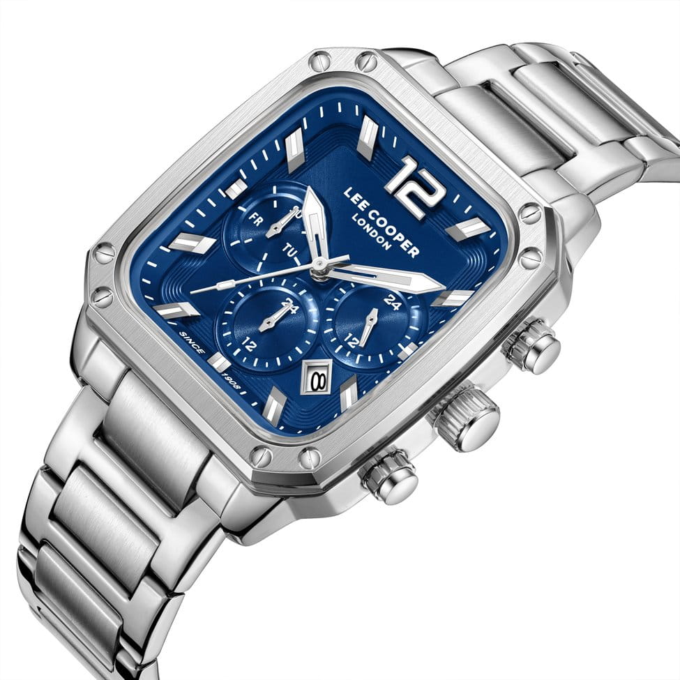 Мужские наручные часы Lee Cooper LC08182.390 оснащены кварцевым механизмом, обеспечивающий высокую точность хода и надежность. Элегантный корпус часов выполнен из суперметалла серебристого цвета, что делает их устойчивыми к внешним воздействиям и придает благородный вид. Циферблат украшен классическими стрелками и метками с люминесцентным покрытиемЛюминесцентное покрытиеПозволяет считывать показания времени в темноте. Производители наносят на стрелки, часовые индексы, безель или поверхность циферблата светонакопительный состав, дающий холодное свечение., гармонично дополняющим общий дизайн модели. Для защиты циферблата используется минеральное стеклоМинеральное стеклоМинеральное стекло представляет собой искусственно выращенный минерал кварца. Такое стекло отличается особой устойчивостью к повреждениям и царапинам. Уступает по некоторым качествам сапфировому стеклу., устойчивое к царапинам и механическим повреждениям. Корпус размером 39 мм x 49 мм, что делает часы заметными и подходящими. Стальной браслет на раскладной застёжкеРаскладная застёжкаТакой тип застёжки используется только на браслетах из металла. Она никогда не раскрывается полностью, происходит разделение на 2 и более частей. Раскладывающая застёжка снизит вероятность потери часов к минимуму. обеспечивает комфортное и безопасное ношение. Окошко даты находится в положении между 4 и 5 часов. Часы обладают водонепроницаемостью до 30 метров (3 АТМ), что позволяет использовать их в повседневной жизни, включая контакт с водой при мытье рук или дожде. Эти часы станут идеальным выбором для мужчин, ценящих стиль, качество и функциональность.