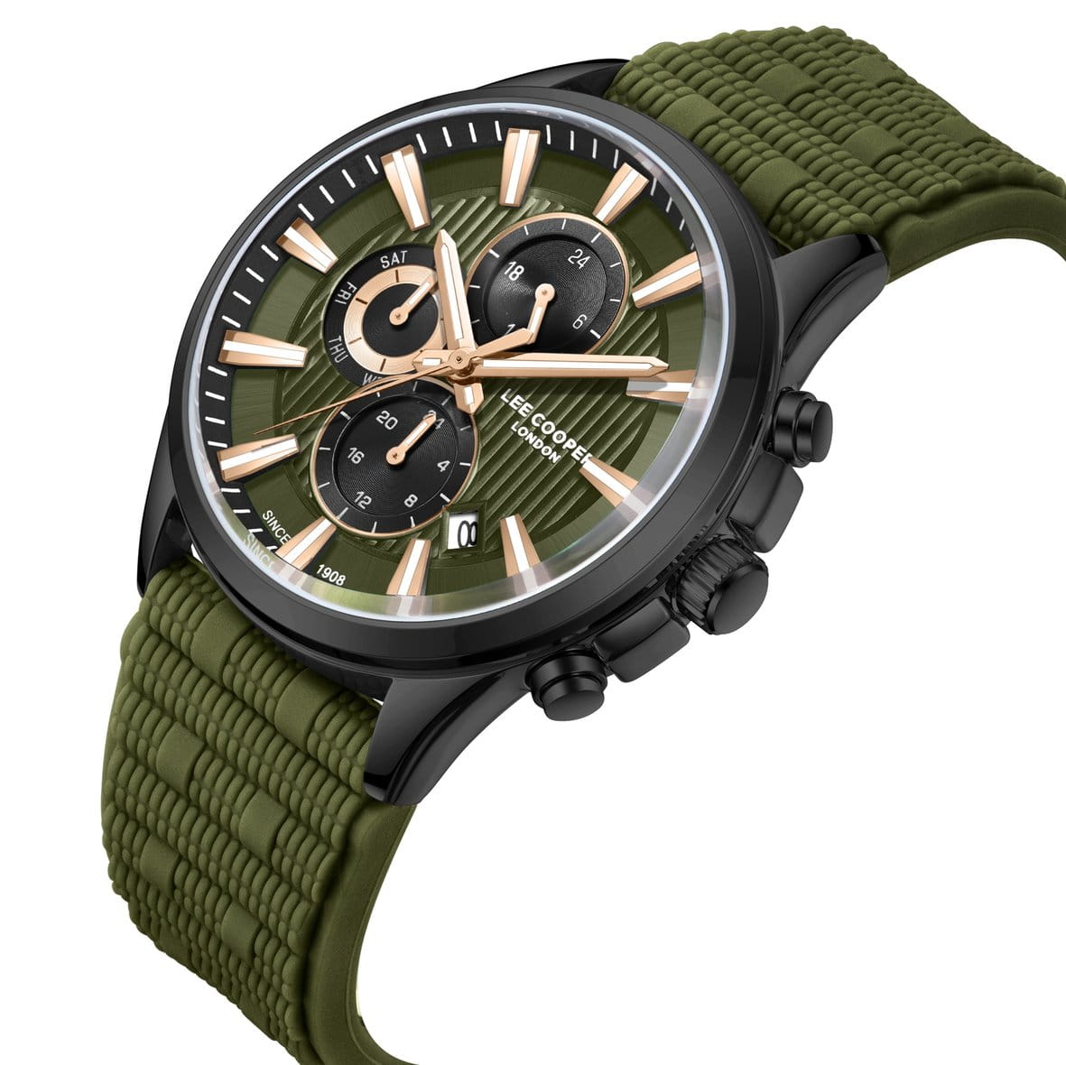 Мужские наручные часы Lee Cooper LC08183.675 оснащены кварцевым механизмом, обеспечивающий высокую точность хода и надежность. Элегантный корпус часов выполнен из суперметалла с IP-покрытиемIP-покрытиеМетод ионного напыления. Демонстрирует повышенную устойчивость к истиранию, окислению и химическим веществам. Под воздействием высокого давления и температуры около 1500°C молекулы металла надёжно соединяются с частицами корпуса часов. черного цвета, что делает их устойчивыми к внешним воздействиям и придает благородный вид. Циферблат украшен классическими стрелками и метками с люминесцентным покрытиемЛюминесцентное покрытиеПозволяет считывать показания времени в темноте. Производители наносят на стрелки, часовые индексы, безель или поверхность циферблата светонакопительный состав, дающий холодное свечение., гармонично дополняющим общий дизайн модели. Для защиты циферблата используется минеральное стеклоМинеральное стеклоМинеральное стекло представляет собой искусственно выращенный минерал кварца. Такое стекло отличается особой устойчивостью к повреждениям и царапинам. Уступает по некоторым качествам сапфировому стеклу., устойчивое к царапинам и механическим повреждениям. Корпус диаметром 43 мм, что делает часы заметными и подходящими для любого образа. Каучуковый ремешок на стандартной застёжке обеспечивает комфортное и безопасное ношение. Окошко даты находится в положении между 4 и 5 часов. Часы обладают водонепроницаемостью до 30 метров (3 АТМ), что позволяет использовать их в повседневной жизни, включая контакт с водой при мытье рук или дожде. Эти часы станут идеальным выбором для мужчин, ценящих стиль, качество и функциональность.