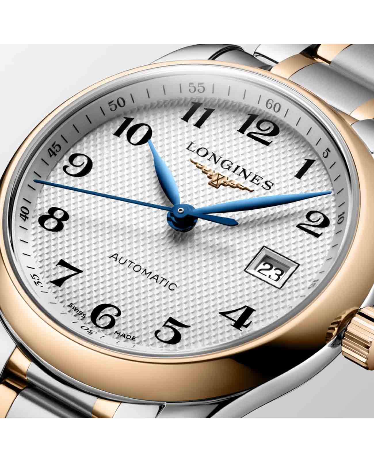 Удобные и, в то же время, стильные часы для женщин Longines Master L2.257.5.79.7. Сапфировое стеклоСапфировое стеклоПрочный и надёжный материал из кристалла сапфира синтетического происхождения, характеризующийся особой твёрдостью и устойчивостью к царапинам и повреждениям.. Механизм с автоподзаводом, частота колебаний 28 800 полуколебаний в час, запас хода около 45 часов. Корпус часов из стали. БезельБезельВнешний ободок, закрепляющий стекло. В спортивных часах так называется поворотное кольцо с делениями на циферблате, выполняет роль таймера – замеряет отрезки времени на шкале. Неподвижный безель – элемент декора. Однонаправленно вращающийся безель на дайверских часах позволяет фиксировать моменты погружения и выныривания на поверхность. из 18-ти каратного золота18-каратное золотоОбозначение по каратной системе пробирования, оно показывает, сколько драгоценного металла содержится в изделии. 18 карат - в составе 75% чистого золота, соответствует 750 пробе.