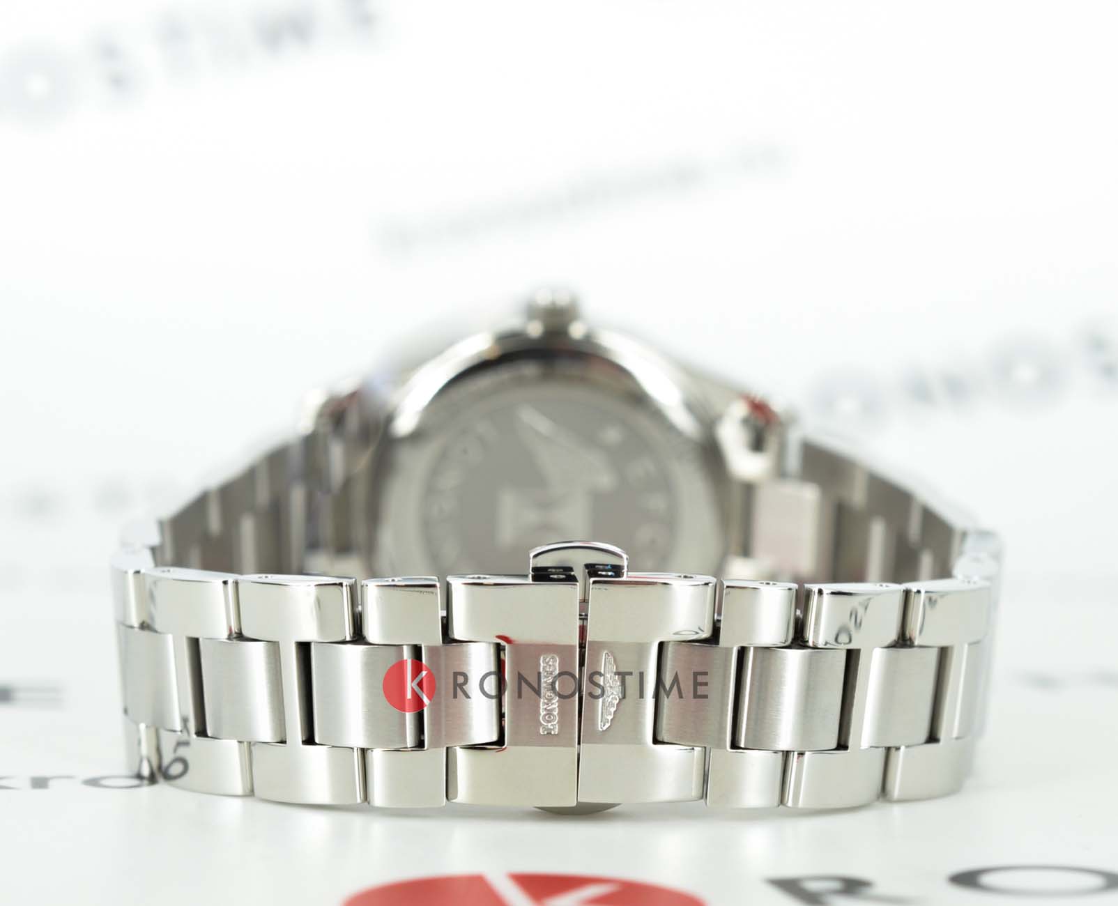 Дизайнеры акцентируют внимание на декоративном безелеБезельВнешний ободок, закрепляющий стекло. В спортивных часах так называется поворотное кольцо с делениями на циферблате, выполняет роль таймера – замеряет отрезки времени на шкале. Неподвижный безель – элемент декора. Однонаправленно вращающийся безель на дайверских часах позволяет фиксировать моменты погружения и выныривания на поверхность., инкрустированном 34 бриллиантами весом в 0,312 карата. Швейцарский кварцевый механизм L152 защищён корпусом из нержавеющей стали 316L. Сапфировое стекло дополнено многослойным антибликовым покрытиемАнтибликовое покрытиеСлой оксида металла в 0,13-0,3 микрон, благодаря которому стекло часов не бликует и не отражает свет. Антибликовое покрытие уменьшает отражение света в 10 раз, обеспечивая отличную читаемость показателей циферблата.. Функции: календарь, индикатор EOLEOLПредставляет собой систему, уведомляющую владельца часов о необходимости замены элемента питания. За 2 недели до полного разряда батарейки секундная стрелка перестаёт ходить чётко и начинает перепрыгивать на 3-4 деления..