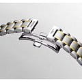 . Изысканная чистота циферблата подчеркивает ее мягкий силуэт, обрамленный сиянием бриллиантов. Циферблат с 13 бриллиантами группы Top Wesselton VS-SI общим весом 0.059 карата. Окошко даты в положении 3 часов. Класс водозащиты: 30 метров, позволит защитить корпус от случайных брызг или капель дождя. Браслет из стали и 18-каратного золота18-каратное золотоОбозначение по каратной системе пробирования, оно показывает, сколько драгоценного металла содержится в изделии. 18 карат - в составе 75% чистого золота, соответствует 750 пробе.