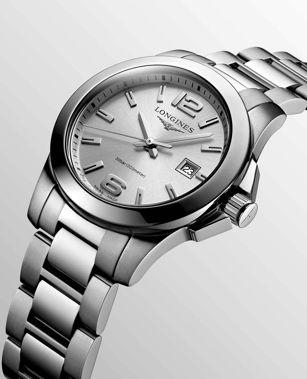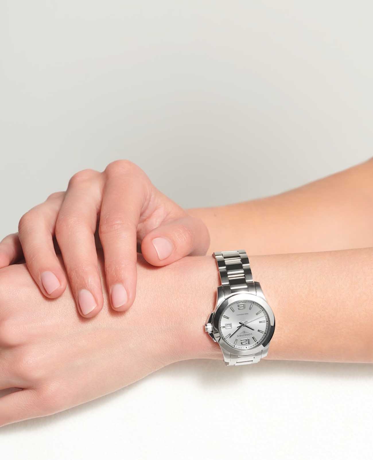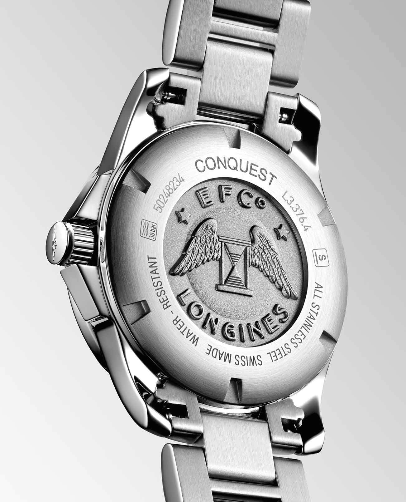 Женские кварцевые швейцарские часы Longines Conquest L3.376.4.76.6 – это гармоничное сочетание делового стиля и элегантности, созданное специально для современных женщин, ценящих одновременно строгость и изысканность.Корпус из нержавеющей стали, защищенный стойким PVD-покрытиемPVDУльтратонкое покрытие наносится в технике вакуумного напыления, сочетает в себе нитрид титана особой прочности со слоем золота или оксида хрома. Несёт в себе декоративную или защитную функцию., демонстрирует надежность и прочность, свойственные спортивным моделям, но при этом сохраняет элегантность, необходимую для офисного дресс-кода.