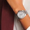 Женские швейцарские механические часы с автоподзаводом Longines Conquest L3.430.0.87.6. Сапфировое стеклоСапфировое стеклоПрочный и надёжный материал из кристалла сапфира синтетического происхождения, характеризующийся особой твёрдостью и устойчивостью к царапинам и повреждениям. устойчивое к появлению царапин, обладающее высокой прозрачностью. Корпус часов изготовлен из нержавеющей стали. Циферблат выполнен по технологии Sunray (солнечные лучи). Циферблат и безельБезельВнешний ободок, закрепляющий стекло. В спортивных часах так называется поворотное кольцо с делениями на циферблате, выполняет роль таймера – замеряет отрезки времени на шкале. Неподвижный безель – элемент декора. Однонаправленно вращающийся безель на дайверских часах позволяет фиксировать моменты погружения и выныривания на поверхность. украшены бриллиантами группы Top Wesselton VS-SI. Стрелки с люминесцентным покрытиемЛюминесцентное покрытиеПозволяет считывать показания времени в темноте. Производители наносят на стрелки, часовые индексы, безель или поверхность циферблата светонакопительный состав, дающий холодное свечение. Super-LumiNova. Окошко даты в положении 6 часов. Прозрачная задняя крышка. Класс водозащиты: 100 метров, позволит плавать, нырять и заниматься другими водными видами спорта. Стальной браслет на раскладной застёжкеРаскладная застёжкаТакой тип застёжки используется только на браслетах из металла. Она никогда не раскрывается полностью, происходит разделение на 2 и более частей. Раскладывающая застёжка снизит вероятность потери часов к минимуму..