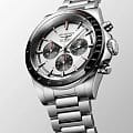 Мужские швейцарские механические часы- хронографХронографФункция позволяет измерять отрезки времени с особой точностью: часы, минуты, секунды. Верным признаком хронографа является наличие на циферблате 3 дополнительных окошек-счётчиков. Longines Conquest L3.835.4.72.6. Сапфировое стеклоСапфировое стеклоПрочный и надёжный материал из кристалла сапфира синтетического происхождения, характеризующийся особой твёрдостью и устойчивостью к царапинам и повреждениям. с многослойным антибликовым покрытием с обеих сторон, устойчивое к появлению царапин, обладающее высокой прозрачностью. Корпус часов изготовлен из стали. Неподвижный безельБезельВнешний ободок, закрепляющий стекло. В спортивных часах так называется поворотное кольцо с делениями на циферблате, выполняет роль таймера – замеряет отрезки времени на шкале. Неподвижный безель – элемент декора. Однонаправленно вращающийся безель на дайверских часах позволяет фиксировать моменты погружения и выныривания на поверхность. из стали и керамики, защищенный от царапин, никогда не изнашивается и не выцветает. Шкала тахиметраТахиметрРазмеченная шкала, располагается на ободке или безеле часов. Тахиметр позволяет рассчитать скорость на определённом участке пути, расстояние измеряется в километрах или милях.. На циферблате расположены три дополнительных циферблата. Стрелки и метки с люминесцентным покрытиемЛюминесцентное покрытиеПозволяет считывать показания времени в темноте. Производители наносят на стрелки, часовые индексы, безель или поверхность циферблата светонакопительный состав, дающий холодное свечение.. Класс водозащиты: 100 метров, позволит плавать, нырять и заниматься другими водными видами спорта. Стальной браслет на раскладной застёжкеРаскладная застёжкаТакой тип застёжки используется только на браслетах из металла. Она никогда не раскрывается полностью, происходит разделение на 2 и более частей. Раскладывающая застёжка снизит вероятность потери часов к минимуму..