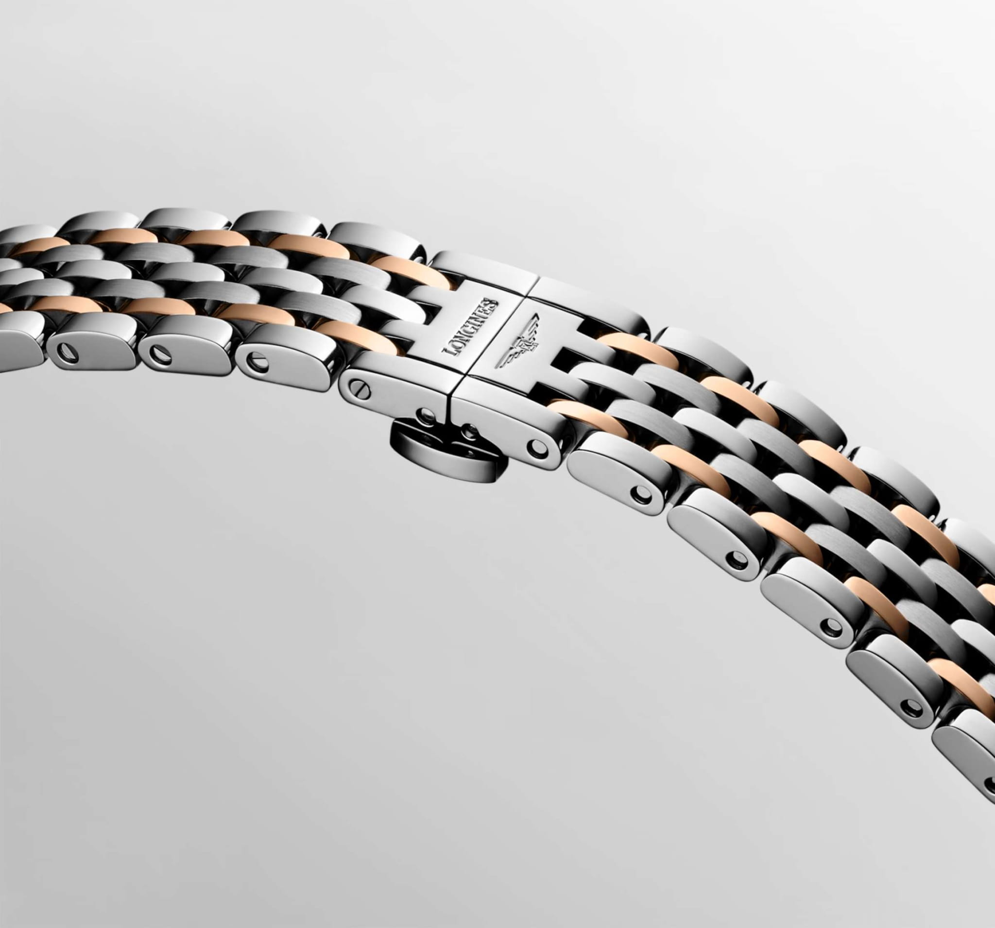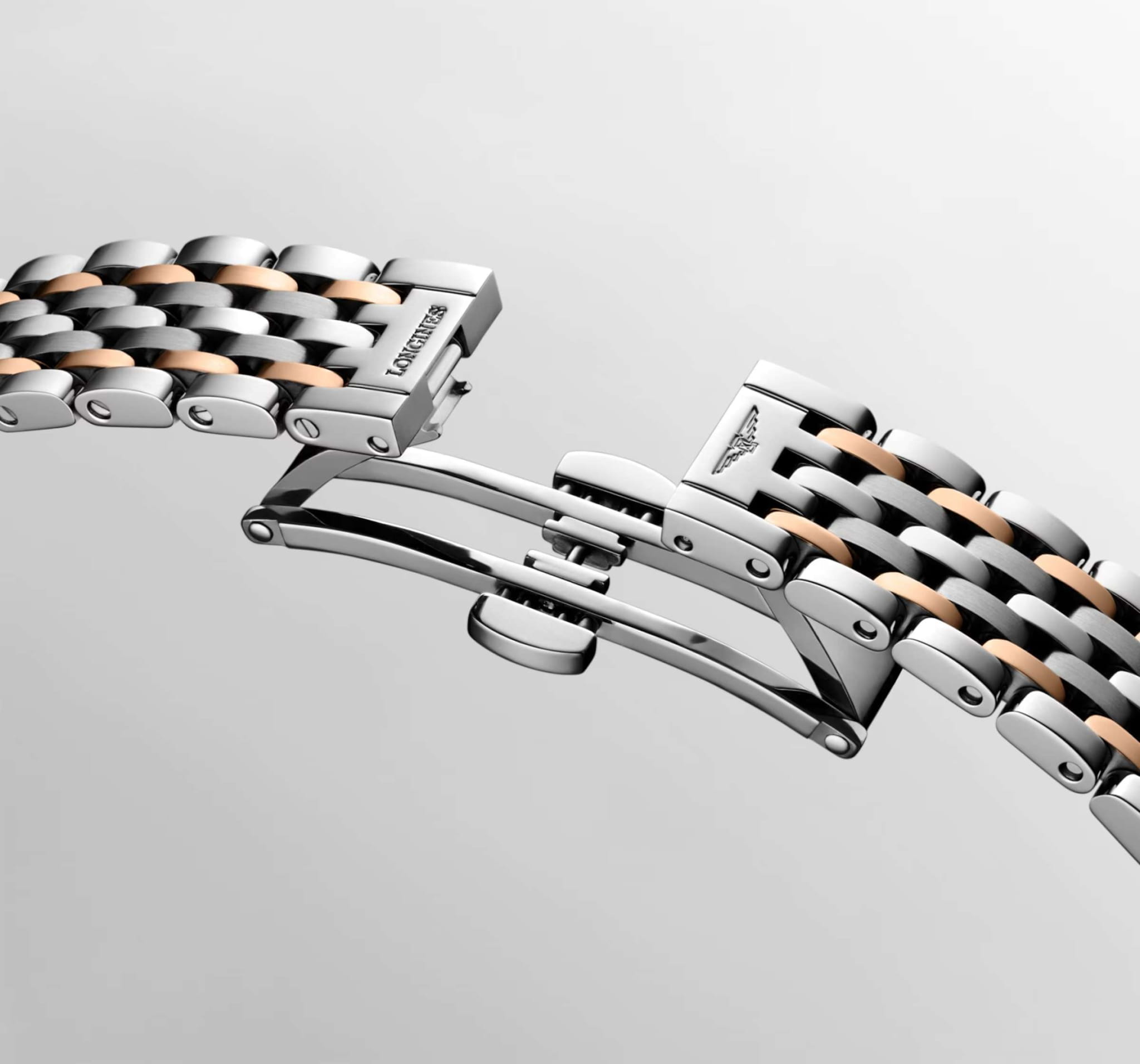 Изысканные женские часы Longines Elegant Collection L4.310.5.81.7 — это воплощение спокойной роскоши и вечного стиля. Все элементы циферблата подчеркивают элегантность и классический вкус модели. Корпус часов изготовлен из нержавеющей стали, диаметром 29 мм. Защиту циферблата обеспечивает прочное сапфировое стеклоСапфировое стеклоПрочный и надёжный материал из кристалла сапфира синтетического происхождения, характеризующийся особой твёрдостью и устойчивостью к царапинам и повреждениям. с антибликовым покрытиемАнтибликовое покрытиеСлой оксида металла в 0,13-0,3 микрон, благодаря которому стекло часов не бликует и не отражает свет. Антибликовое покрытие уменьшает отражение света в 10 раз, обеспечивая отличную читаемость показателей циферблата. гарантирующее четкость показаний. Циферблат украшен 13 бриллиантами Top Wesselton VS-SI общим весом 0,029 карата. Неподвижный безельБезельВнешний ободок, закрепляющий стекло. В спортивных часах так называется поворотное кольцо с делениями на циферблате, выполняет роль таймера – замеряет отрезки времени на шкале. Неподвижный безель – элемент декора. Однонаправленно вращающийся безель на дайверских часах позволяет фиксировать моменты погружения и выныривания на поверхность. из 18-каратного золота18-каратное золотоОбозначение по каратной системе пробирования, оно показывает, сколько драгоценного металла содержится в изделии. 18 карат - в составе 75% чистого золота, соответствует 750 пробе.