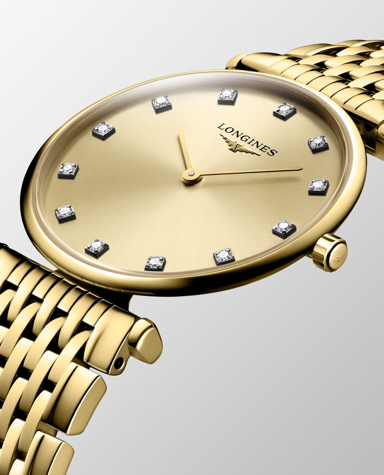 Женские швейцарские часы Longines La Grande Classique L4.512.2.37.8, кварцевый механизм с высокой точностью. Сапфировое стеклоСапфировое стеклоПрочный и надёжный материал из кристалла сапфира синтетического происхождения, характеризующийся особой твёрдостью и устойчивостью к царапинам и повреждениям. устойчивое к появлению царапин, обладающее высокой прозрачностью. Корпус часов изготовлен из стали с PVD-покрытиемPVDУльтратонкое покрытие наносится в технике вакуумного напыления, сочетает в себе нитрид титана особой прочности со слоем золота или оксида хрома. Несёт в себе декоративную или защитную функцию.. Циферблат дополнен 12 бриллиантами группы Top Wesselton VS-SI общим весом 0.081 карата. Класс водозащиты: 30 метров, позволит защитить корпус от случайных брызг или капель дождя. Браслет из стали с PVD-покрытиемPVDУльтратонкое покрытие наносится в технике вакуумного напыления, сочетает в себе нитрид титана особой прочности со слоем золота или оксида хрома. Несёт в себе декоративную или защитную функцию. на раскладной застёжкеРаскладная застёжкаТакой тип застёжки используется только на браслетах из металла. Она никогда не раскрывается полностью, происходит разделение на 2 и более частей. Раскладывающая застёжка снизит вероятность потери часов к минимуму..