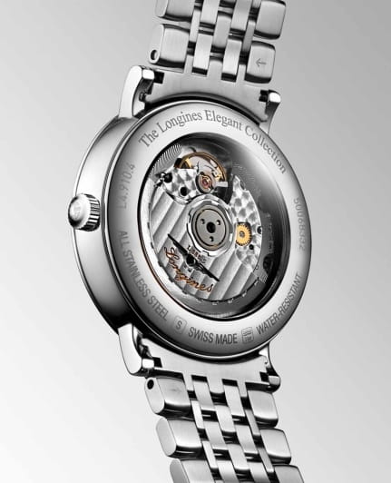 Изысканные мужские часы Longines Elegant Collection L4.910.4.59.6 — это воплощение спокойной роскоши и вечного стиля. Все элементы циферблата подчеркивают элегантность и классический вкус модели. Корпус часов изготовлен из нержавеющей стали, диаметром 39 мм. Защиту циферблата обеспечивает прочное сапфировое стеклоСапфировое стеклоПрочный и надёжный материал из кристалла сапфира синтетического происхождения, характеризующийся особой твёрдостью и устойчивостью к царапинам и повреждениям. с антибликовым покрытиемАнтибликовое покрытиеСлой оксида металла в 0,13-0,3 микрон, благодаря которому стекло часов не бликует и не отражает свет. Антибликовое покрытие уменьшает отражение света в 10 раз, обеспечивая отличную читаемость показателей циферблата. гарантирующее четкость показаний. Циферблат украшен 13 бриллиантами Top Wesselton VS-SI общим весом 0,032 карата. Автоматический механизм L888 обеспечивает высокую точность и простоту использования. Водостойкость до 30 метров позволит плавать, нырять и заниматься другими водными видами спорта. Изысканный браслет выполнен из нержавеющей стали на застёжке-бабочке с кнопкамиЗастёжка "бабочка"Такой вид застёжки дополняется предохранителями, помогающими избежать случайного раскрытия браслета. Обладают изящным исполнением. , обеспечивающей комфортное ношение и надёжную фиксацию на запястье. Окошко даты в положении 3 часа. Коллекция The Elegant Collection сочетает в себе классическую элегантность и современный подход к дизайну, делая эти часы универсальным аксессуаром — как для торжественных случаев, так и для повседневной жизни.