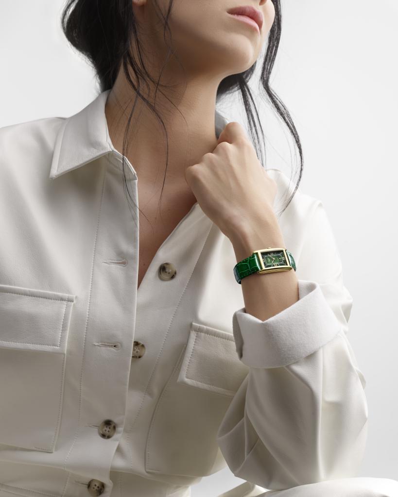 . Метки в виде римских цифр. Малая секундная стрелка в положении 6 часов. Класс водозащиты: 30 метров, позволит защитить корпус от случайных брызг или капель дождя. Ремешок из кожи аллигатора с системой быстрой замены на стандартной застежке.