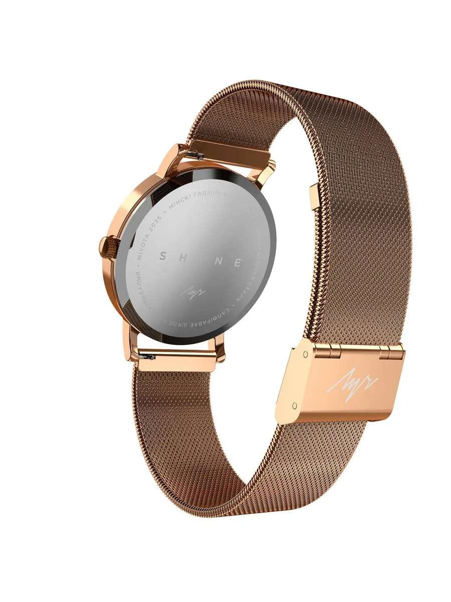 Женские наручные часы Луч Shine 398378664 — это стильное сочетание элегантности и современного дизайна. Часы идеально подходят для повседневного ношения, а также для особых случаев. Изысканный корпус диаметром 36.6 мм выполнен из нержавеющей стали с IP-покрытиемIP-покрытиеМетод ионного напыления. Демонстрирует повышенную устойчивость к истиранию, окислению и химическим веществам. Под воздействием высокого давления и температуры около 1500°C молекулы металла надёжно соединяются с частицами корпуса часов., который придает модели особый вид. Циферблат защищен сапфировым стекломСапфировое стеклоПрочный и надёжный материал из кристалла сапфира синтетического происхождения, характеризующийся особой твёрдостью и устойчивостью к царапинам и повреждениям., обеспечивающим устойчивость к царапинам. Лаконичные стрелки золотистого цвета. Часы оснащены кварцевым механизмом,а браслет из нержавеющей стали с IP-покрытиемIP-покрытиеМетод ионного напыления. Демонстрирует повышенную устойчивость к истиранию, окислению и химическим веществам. Под воздействием высокого давления и температуры около 1500°C молекулы металла надёжно соединяются с частицами корпуса часов. на раскладном замкеРаскладной замокДанный вариант застежки используется только на часах с металлическим браслетом. Отличительная особенность такого крепления в том, что длина браслета становится универсальной и вы можете самостоятельно отрегулировать нужный вам размер – застежка просто двигается по браслету часов. гарантирует комфортную посадку на запястье. Водозащита 30 метров позволит защитить корпус от случайных брызг или капель дождя. Луч — отличный выбор для тех, кто ценит утонченность и качество.