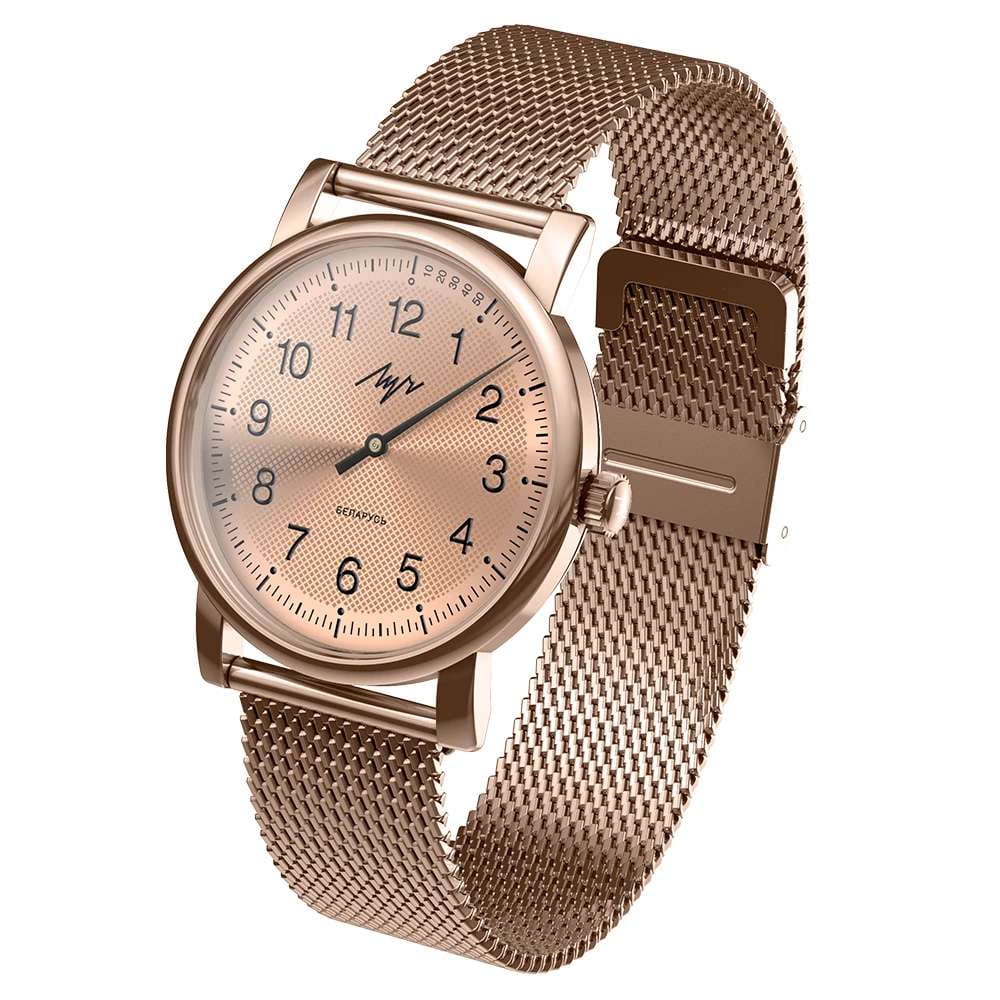 Женские часы Луч Однострелочник 81957985 — это стильное сочетание элегантности и современного дизайна. Часы идеально подходят для повседневного ношения, а также для особых случаев. Изысканный корпус диаметром 37.6 мм выполнен из нержавеющей стали с IP-покрытиемIP-покрытиеМетод ионного напыления. Демонстрирует повышенную устойчивость к истиранию, окислению и химическим веществам. Под воздействием высокого давления и температуры около 1500°C молекулы металла надёжно соединяются с частицами корпуса часов., который придает модели особый вид. Циферблат защищен минеральным стекломМинеральное стеклоМинеральное стекло представляет собой искусственно выращенный минерал кварца. Такое стекло отличается особой устойчивостью к повреждениям и царапинам. Уступает по некоторым качествам сапфировому стеклу., обеспечивающим устойчивость к царапинам. Метки в виде арабских цифр, лаконичная изящная стрелка. Часы оснащены механическим механизмом с ручным заводом, а браслет из нержавеющей стали с IP-покрытиемIP-покрытиеМетод ионного напыления. Демонстрирует повышенную устойчивость к истиранию, окислению и химическим веществам. Под воздействием высокого давления и температуры около 1500°C молекулы металла надёжно соединяются с частицами корпуса часов. на раскладном замкеРаскладной замокДанный вариант застежки используется только на часах с металлическим браслетом. Отличительная особенность такого крепления в том, что длина браслета становится универсальной и вы можете самостоятельно отрегулировать нужный вам размер – застежка просто двигается по браслету часов. гарантирует комфортную посадку на запястье. Водозащита 30 метров позволит защитить корпус от случайных брызг или капель дождя. Луч — отличный выбор для тех, кто ценит утонченность и качество.