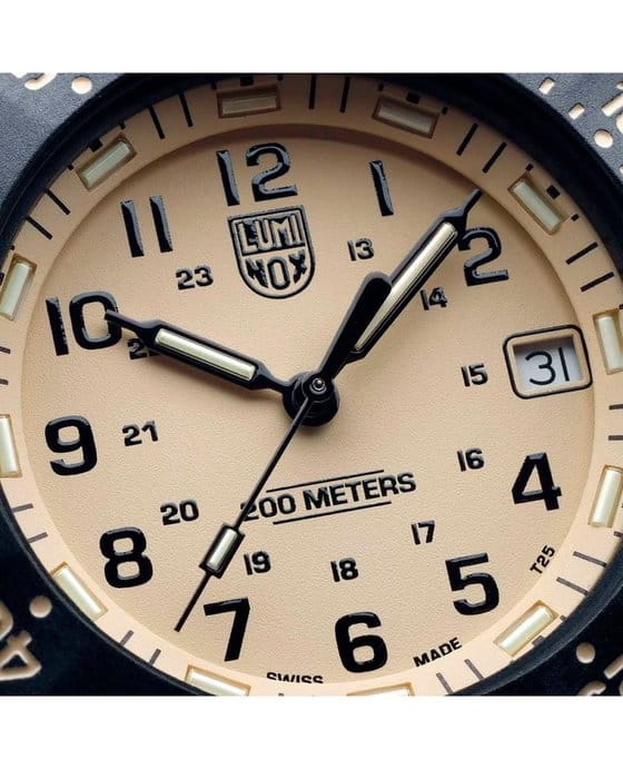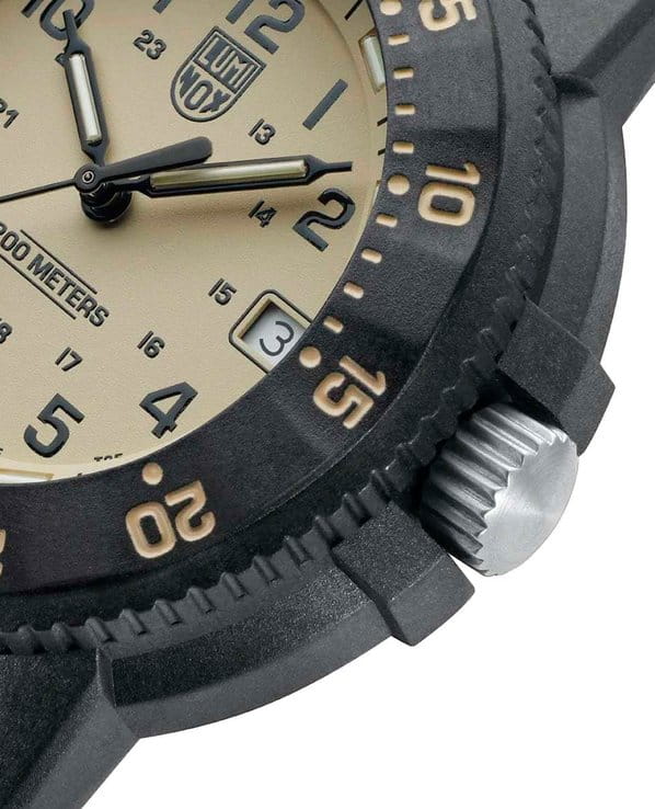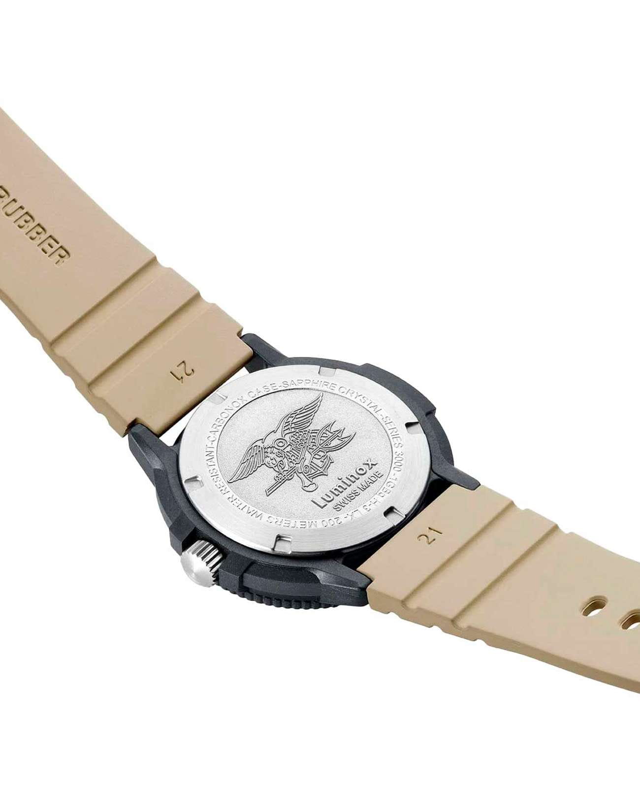 Мужские наручные часы Luminox XS.3010.EVO.S из коллекции Original Navy SEAL сочетают в себе спортивный дизайн и надежность швейцарского качества . Модель обладает круглым корпусом диаметром 43 мм, изготовленным из карбонаКарбонОт «carbon», «carbone» - углерод, углепластик - полимерный композиционный материал из переплетённых под определенным углом между собой нитей углеродного волокна, применяется для изготовления лёгких, но прочных деталей. В часах часто используют для украшения циферблатов и ремешков. Так же карбон используется в изготовлении корпусов. Такие корпуса обладают антикоррозионным свойством, не поддаются электромагнитному излучению, обладают повышенной прочностью и противоударностью. (CARBONOX™), что обеспечивает высокую устойчивость к внешним воздействиям при сохранении легкости. Циферблат песочного цвета украшен контрастными метками и стрелками с , гарантирующим постоянную видимость времени даже в условиях низкой освещенности благодаря системе LLTLLTLLT — это автономный механизм подсветки, основанный на использовании микроскопических газонаполненных элементов. Специальные герметичные капсулы из боросиликатного стекла, интегрированные в циферблат, генерируют свечение без необходимости подключения к внешним источникам энергии. Для их работы не требуется ни дополнительный свет, ни механическое воздействие (например, нажатие кнопки). Свечение возникает благодаря химическому процессу: реакция между тритием, заключенным в капсулах, и люминофорным покрытием создает стабильное автономное освещение. Технология обеспечивает энергетическую независимость и долговечность подсветки. (микрогазовые огни). Часы оснащены кварцевым механизмом швейцарского производства, обеспечивающим точность хода ±15 секунд в месяц. Защиту циферблата обеспечивает прочное сапфировое стеклоСапфировое стеклоПрочный и надёжный материал из кристалла сапфира синтетического происхождения, характеризующийся особой твёрдостью и устойчивостью к царапинам и повреждениям. с антибликовым покрытиемАнтибликовое покрытиеСлой оксида металла в 0,13-0,3 микрон, благодаря которому стекло часов не бликует и не отражает свет. Антибликовое покрытие уменьшает отражение света в 10 раз, обеспечивая отличную читаемость показателей циферблата., устойчивое к царапинам и механическим повреждениям . Водонепроницаемость модели достигает 20 атмосфер (200 метров), что делает их подходящими для плавания и активного отдыха на воде, включая дайвинг. Модель также оснащена безелемБезельВнешний ободок, закрепляющий стекло. В спортивных часах так называется поворотное кольцо с делениями на циферблате, выполняет роль таймера – замеряет отрезки времени на шкале. Неподвижный безель – элемент декора. Однонаправленно вращающийся безель на дайверских часах позволяет фиксировать моменты погружения и выныривания на поверхность. с односторонним вращением, что добавляет функциональности при использовании в водных условиях. Ремешок выполнен из каучука, что обеспечивает комфортное ношение в течение дня. Дополнительно часы имеют окно даты в положении «3 часа», что делает их практичными для повседневного использования. Сочетание современных технологий, надежности и стильного дизайна делает Luminox XS.3010.EVO.S идеальным выбором для ценителей качественных аксессуаров.