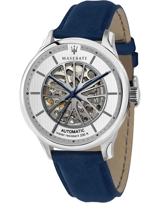 Мужские механические часы-скелетоны Maserati R8821136001, механический механизм (автоматический калибр) с высокой точностью. Класс водозащиты: 100 метров, позволит плавать, нырять и заниматься другими водными видами спорта. Корпус часов изготовлен из стали, цвета.