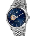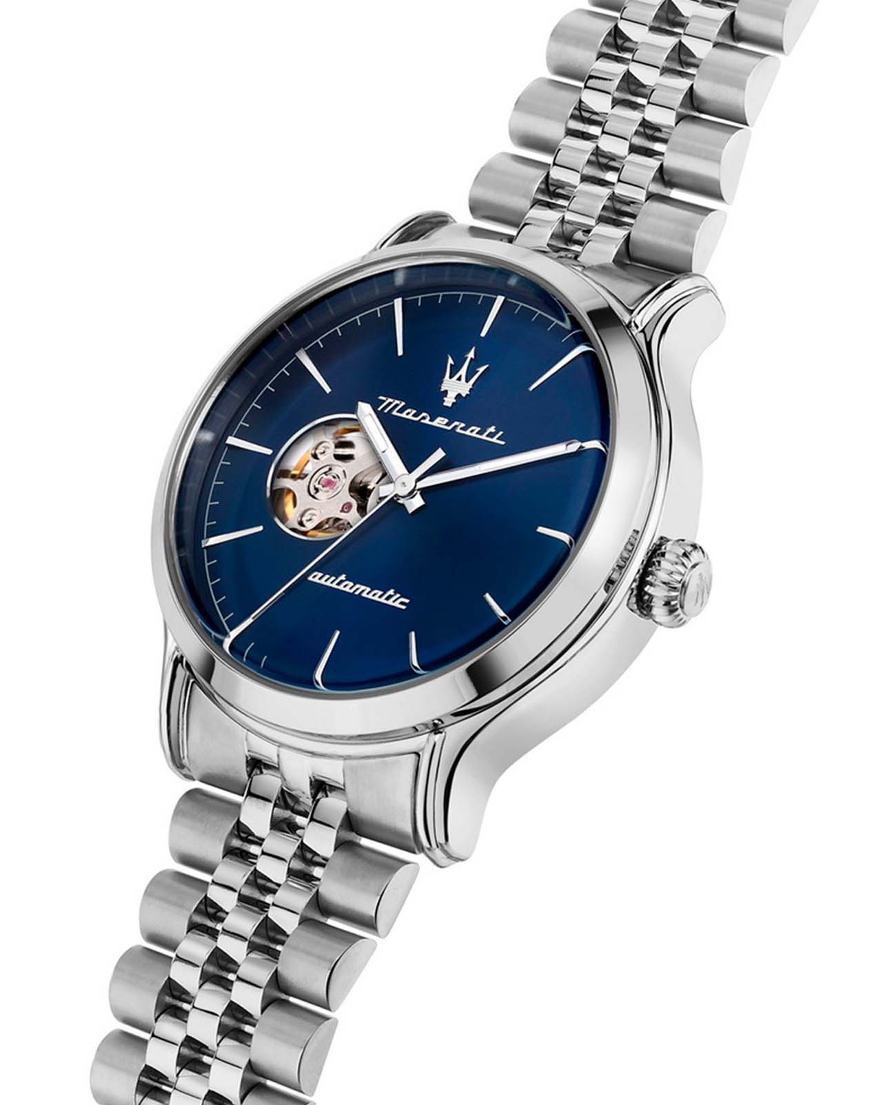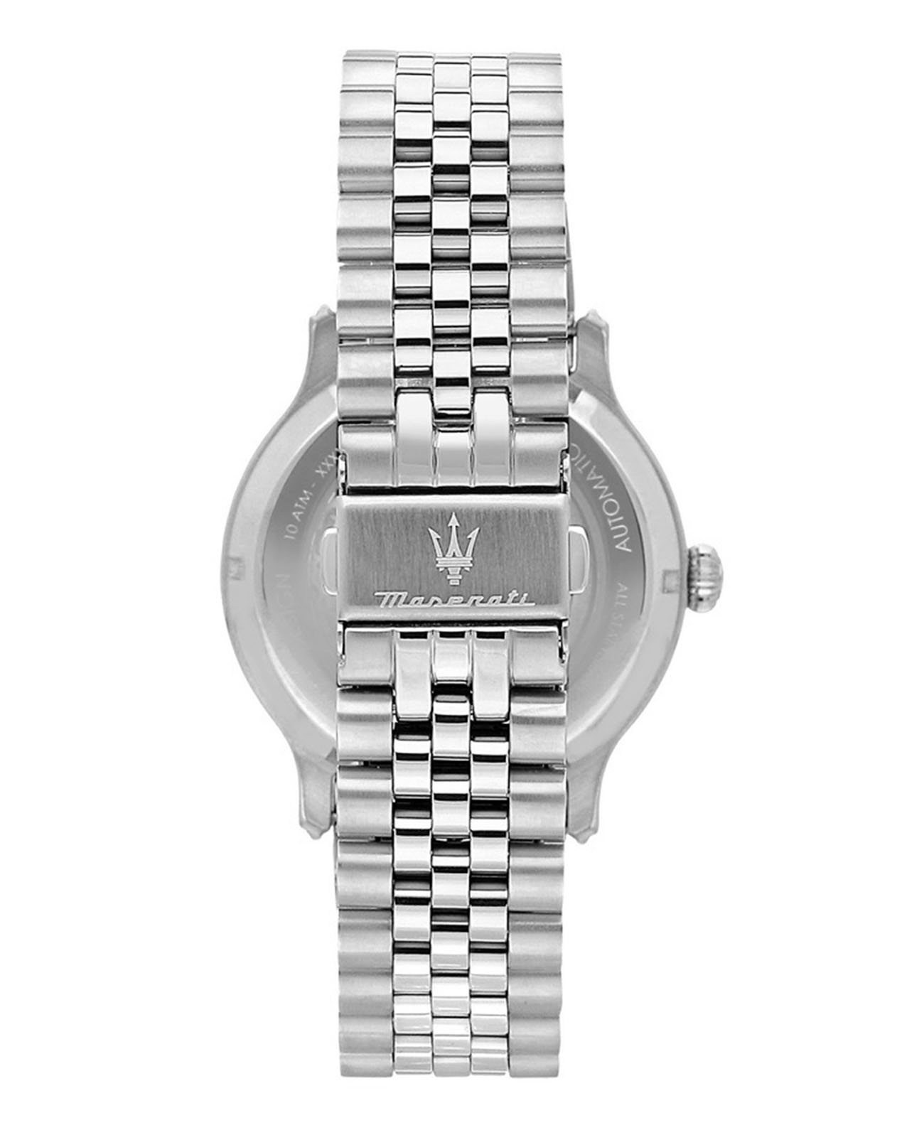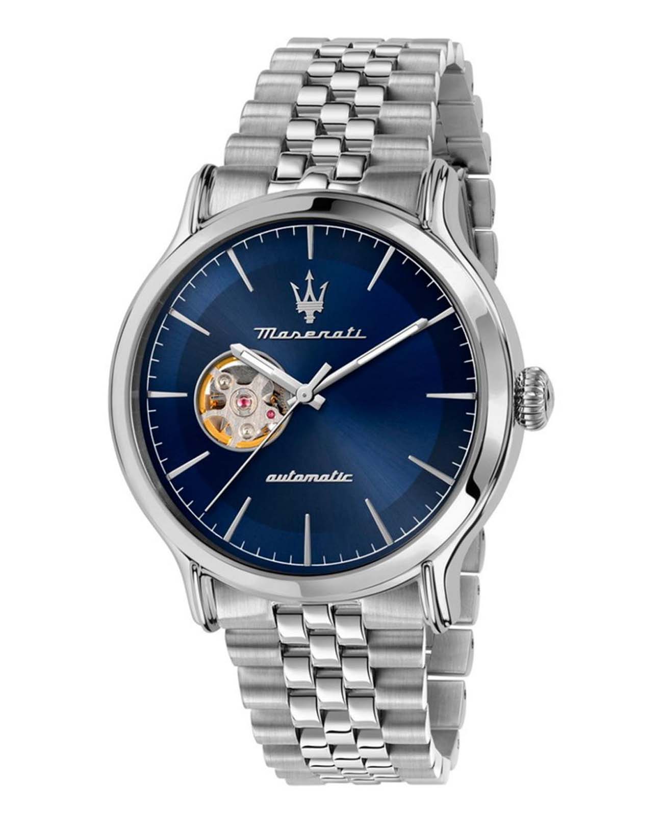 Мужские итальянские механические часы-хронографХронографФункция позволяет измерять отрезки времени с особой точностью: часы, минуты, секунды. Верным признаком хронографа является наличие на циферблате 3 дополнительных окошек-счётчиков. Maserati Epoca R8823118009. Минеральное стеклоМинеральное стеклоМинеральное стекло представляет собой искусственно выращенный минерал кварца. Такое стекло отличается особой устойчивостью к повреждениям и царапинам. Уступает по некоторым качествам сапфировому стеклу. устойчивое к появлению царапин и износу. Корпус часов изготовлен из стали. Люминесцентная подсветкаЛюминесцентное покрытиеПозволяет считывать показания времени в темноте. Производители наносят на стрелки, часовые индексы, безель или поверхность циферблата светонакопительный состав, дающий холодное свечение. стрелок. Класс водозащиты: 100 метров, позволит плавать, нырять и заниматься другими водными видами спорта. Стальной браслет на раскладной застёжкеРаскладная застёжкаТакой тип застёжки используется только на браслетах из металла. Она никогда не раскрывается полностью, происходит разделение на 2 и более частей. Раскладывающая застёжка снизит вероятность потери часов к минимуму..