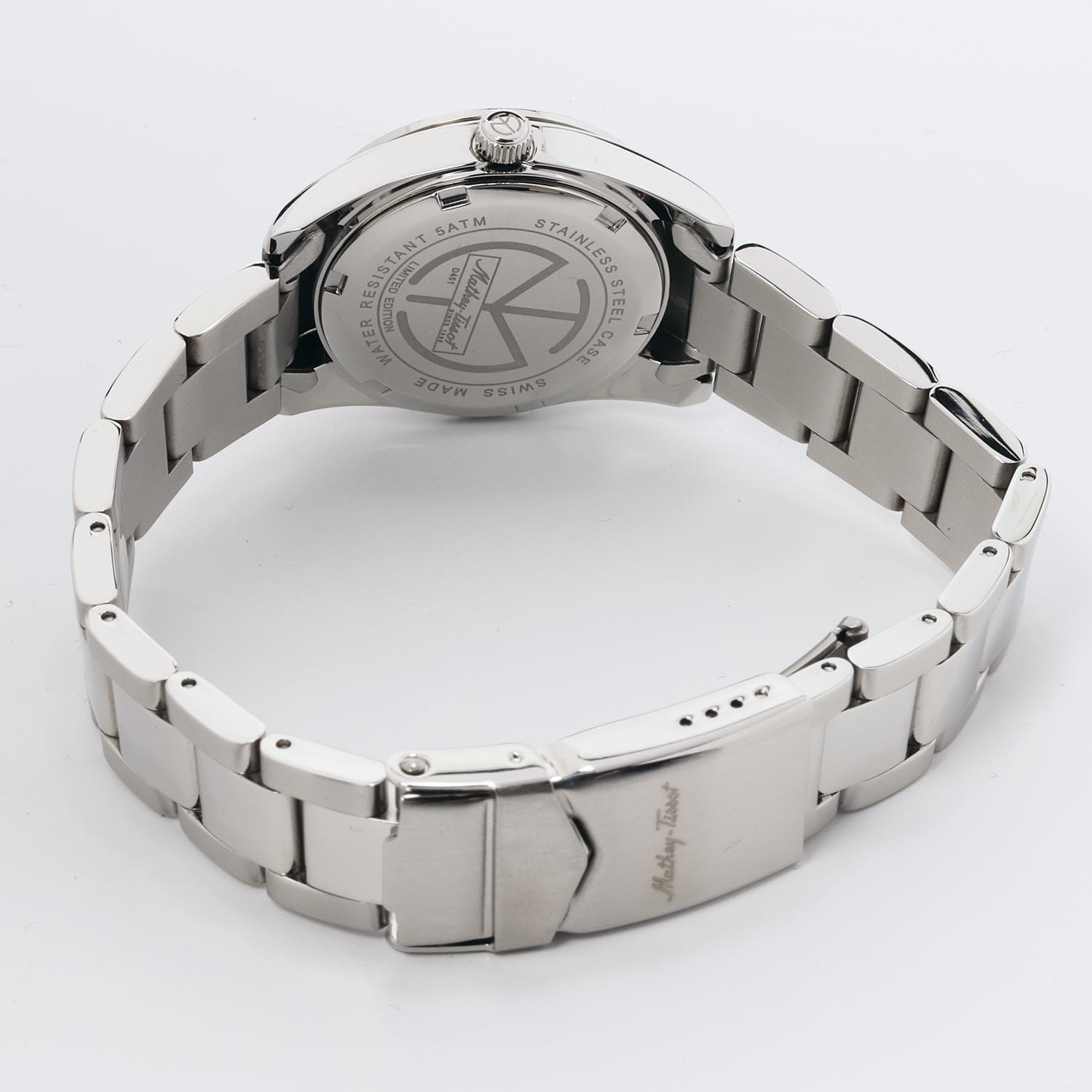 Женские кварцевые часы Mathey-Tissot Mathy D451VE — это стильное сочетание элегантности и современного дизайна. Лимитированная серия. Изящный корпус выполнен из нержавеющей стали, диаметром 32 мм, что придаст образу женственности и романтизма. Изысканный циферблат с метками в виде штрихов придает модели особый блеск. Циферблат защищен минеральным стекломМинеральное стеклоМинеральное стекло представляет собой искусственно выращенный минерал кварца. Такое стекло отличается особой устойчивостью к повреждениям и царапинам. Уступает по некоторым качествам сапфировому стеклу., обеспечивающий устойчивость к царапинам. Стрелки и метки с люминесцентным покрытиемЛюминесцентное покрытиеПозволяет считывать показания времени в темноте. Производители наносят на стрелки, часовые индексы, безель или поверхность циферблата светонакопительный состав, дающий холодное свечение.. Окошко даты находится в положении 3 часа. Часы оснащены надежным кварцевым механизмом. Стальной браслет на раскладной застёжке с фиксаторомРаскладная застёжкаТакой тип застёжки используется только на браслетах из металла. Она никогда не раскрывается полностью, происходит разделение на 2 и более частей. Раскладывающая застёжка снизит вероятность потери часов к минимуму., гарантирует комфортное и безопасное ношение. Класс водозащиты: 50 метров позволит защитить корпус от случайных брызг или капель дождя. Mathey-Tissot — отличный выбор для тех, кто ценит утонченность и качество.