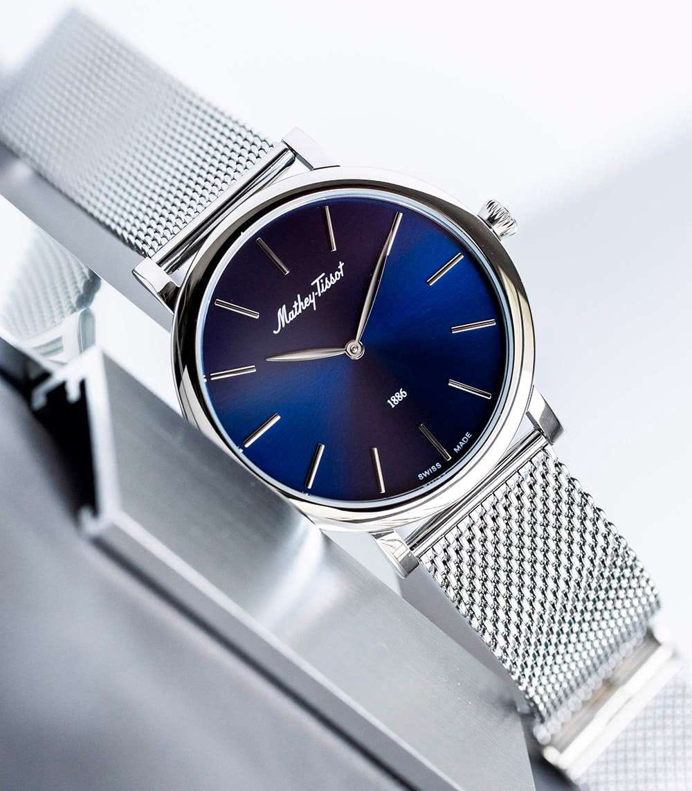 Мужские кварцевые часы Mathey-Tissot Monsoon H7916ABU — это стильное сочетание элегантности и современного дизайна. Изящный корпус выполнен из нержавеющей стали серебристого цвета, диаметром 40 мм, что придаст образу элегантности и надежности. Изысканный циферблат с метками в виде штрихов придает модели особый блеск. Циферблат выполнен по технологии Sunray (солнечные лучи) и защищен минеральным стекломМинеральное стеклоМинеральное стекло представляет собой искусственно выращенный минерал кварца. Такое стекло отличается особой устойчивостью к повреждениям и царапинам. Уступает по некоторым качествам сапфировому стеклу. с сапфировым покрытием, обеспечивает устойчивость к царапинам. Часы оснащены надежным кварцевым механизмом. Стальной браслет миланского плетения на раскладном замкеРаскладная застёжкаТакой тип застёжки используется только на браслетах из металла. Она никогда не раскрывается полностью, происходит разделение на 2 и более частей. Раскладывающая застёжка снизит вероятность потери часов к минимуму., гарантирует комфортное и безопасное ношение. Класс водозащиты: 50 метров позволит защитить корпус от случайных брызг или капель дождя. Mathey-Tissot  — отличный выбор для тех, кто ценит утонченность и качество.