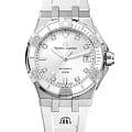 Женские механические часы Maurice Lacroix Aikon Automatic Venturer AI6057-SSL70-150-7 с высокой точностью. Сапфировое стеклоСапфировое стеклоПрочный и надёжный материал из кристалла сапфира синтетического происхождения, характеризующийся особой твёрдостью и устойчивостью к царапинам и повреждениям. устойчивое к появлению царапин, обладающее высокой прозрачностью. Стрелки и метки с люминесцентным покрытиемЛюминесцентное покрытиеПозволяет считывать показания времени в темноте. Производители наносят на стрелки, часовые индексы, безель или поверхность циферблата светонакопительный состав, дающий холодное свечение.. Поворотный керамический безельБезельВнешний ободок, закрепляющий стекло. В спортивных часах так называется поворотное кольцо с делениями на циферблате, выполняет роль таймера – замеряет отрезки времени на шкале. Неподвижный безель – элемент декора. Однонаправленно вращающийся безель на дайверских часах позволяет фиксировать моменты погружения и выныривания на поверхность.. Класс водозащиты: 300 метров, позволит плавать, нырять и заниматься другими водными видами спорта. Корпус часов изготовлен из нержавеющей стали. Каучуковый ремешок на раскладной застёжкеРаскладная застёжкаТакой тип застёжки используется только на браслетах из металла. Она никогда не раскрывается полностью, происходит разделение на 2 и более частей. Раскладывающая застёжка снизит вероятность потери часов к минимуму..