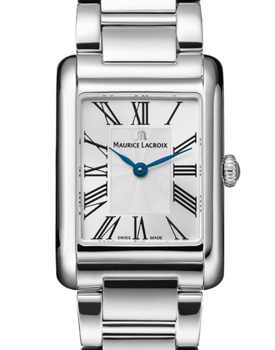 Швейцарские женские кварцевые часы Maurice Lacroix FA1205-SS002-110-1 оснащены корпусом из нержавеющей стали с PVD-покрытиемPVDУльтратонкое покрытие наносится в технике вакуумного напыления, сочетает в себе нитрид титана особой прочности со слоем золота или оксида хрома. Несёт в себе декоративную или защитную функцию. размером 24 мм х 34 мм и защищены сапфировым стекломСапфировое стеклоПрочный и надёжный материал из кристалла сапфира синтетического происхождения, характеризующийся особой твёрдостью и устойчивостью к царапинам и повреждениям., устойчивым к мелким механическим повреждениям. Серебряный циферблат украшен часовыми индексами в виде цифр и стрелками, обеспечивающими функции отображения часов и минут. Часы имеют водонепроницаемость 50 метров, позволит защитить корпус от случайных брызг или капель дождя. Модель комплектуется браслетом из нержавеющей стали на раскладном замкеРаскладной замокДанный вариант застежки используется только на часах с металлическим браслетом. Отличительная особенность такого крепления в том, что длина браслета становится универсальной и вы можете самостоятельно отрегулировать нужный вам размер – застежка просто двигается по браслету часов.. Прочный корпус и надежный механизм гарантируют точность хода и долговечность использования. Дизайн и производство часов выполнены в Швейцарии, что подтверждает их высокое качество. Международная гарантия 2 года обеспечивает уверенность в надежности модели. Эти часы сочетают в себе элегантный дизайн и практичность, делая их универсальным аксессуаром для повседневного использования.