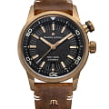 Мужские швейцарские часы Maurice Lacroix Pontos S Diver PT6248-BRZ01-330-3, механический механизм (автоматический калибр) с высокой точностью. Сапфировое стеклоСапфировое стеклоПрочный и надёжный материал из кристалла сапфира синтетического происхождения, характеризующийся особой твёрдостью и устойчивостью к царапинам и повреждениям. устойчивое к появлению царапин, обладающее высокой прозрачностью. Корпус изготовлен из бронзы. Стрелки и метки с люминесцентным покрытиемЛюминесцентное покрытиеПозволяет считывать показания времени в темноте. Производители наносят на стрелки, часовые индексы, безель или поверхность циферблата светонакопительный состав, дающий холодное свечение..Класс водозащиты: 300 метров, позволит плавать, нырять и заниматься другими водными видами спорта. Кожаный ремешок.