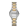 Женские американские часы Michael Kors SAGE MK4910 имеют кварцевый механизм с высокой точностью. Корпус часов изготовлен из нержавеющей стали серебристого цвета, диаметром 31 мм. Циферблат с метками в виде римских цифр защищен минеральным стекломМинеральное стеклоМинеральное стекло представляет собой искусственно выращенный минерал кварца. Такое стекло отличается особой устойчивостью к повреждениям и царапинам. Уступает по некоторым качествам сапфировому стеклу., что обеспечивает надежную защиту от царапин и повреждений. Неподвижный безельБезельВнешний ободок, закрепляющий стекло. В спортивных часах так называется поворотное кольцо с делениями на циферблате, выполняет роль таймера – замеряет отрезки времени на шкале. Неподвижный безель – элемент декора. Однонаправленно вращающийся безель на дайверских часах позволяет фиксировать моменты погружения и выныривания на поверхность. с PVD-покрытиемPVDУльтратонкое покрытие наносится в технике вакуумного напыления, сочетает в себе нитрид титана особой прочности со слоем золота или оксида хрома. Несёт в себе декоративную или защитную функцию. украшен кристаллами. Класс водозащиты: 50 метров позволит защитить корпус от случайных брызг или капель дождя. Стрелки с люминесцентным покрытиемЛюминесцентное покрытиеПозволяет считывать показания времени в темноте. Производители наносят на стрелки, часовые индексы, безель или поверхность циферблата светонакопительный состав, дающий холодное свечение.. Стальной браслет с частичным PVD-покрытиемPVDУльтратонкое покрытие наносится в технике вакуумного напыления, сочетает в себе нитрид титана особой прочности со слоем золота или оксида хрома. Несёт в себе декоративную или защитную функцию. на раскладной застёжкеРаскладная застёжкаТакой тип застёжки используется только на браслетах из металла. Она никогда не раскрывается полностью, происходит разделение на 2 и более частей. Раскладывающая застёжка снизит вероятность потери часов к минимуму. обеспечивает надежную фиксацию на запястье и легкость в надевании и снятии. Эти часы станут отличным дополнением к любому наряду, подчеркивая индивидуальность и стиль их обладательницы. Идеальный аксессуар, который придаст женскому образу завершенность и особый шарм.