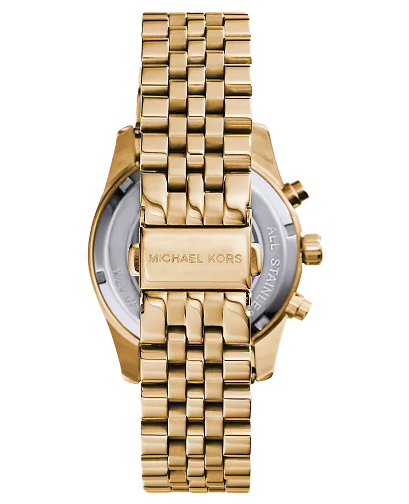 Женские часы-хронографХронографФункция позволяет измерять отрезки времени с особой точностью: часы, минуты, секунды. Верным признаком хронографа является наличие на циферблате 3 дополнительных окошек-счётчиков. Michael Kors Lexington MK7378, кварцевый механизм с высокой точностью. Минеральное стеклоМинеральное стеклоМинеральное стекло представляет собой искусственно выращенный минерал кварца. Такое стекло отличается особой устойчивостью к повреждениям и царапинам. Уступает по некоторым качествам сапфировому стеклу. устойчивое к появлению царапин, обладающее высокой прозрачностью. Корпус и браслет изготовлены из нержавеющей стали c PVDPVDУльтратонкое покрытие наносится в технике вакуумного напыления, сочетает в себе нитрид титана особой прочности со слоем золота или оксида хрома. Несёт в себе декоративную или защитную функцию. покрытием. На циферблате три дополнительных индикатора, окошко даты положении 6 часов. Класс водозащиты: 100 метров, позволит плавать, нырять и заниматься другими водными видами спорта. Стальной браслет на раскладной застёжкеРаскладная застёжкаТакой тип застёжки используется только на браслетах из металла. Она никогда не раскрывается полностью, происходит разделение на 2 и более частей. Раскладывающая застёжка снизит вероятность потери часов к минимуму..