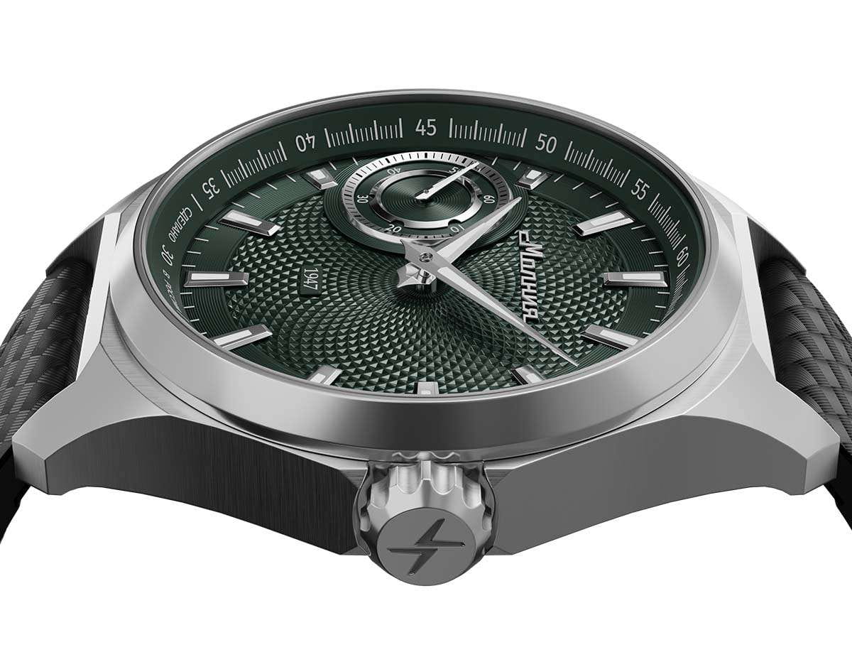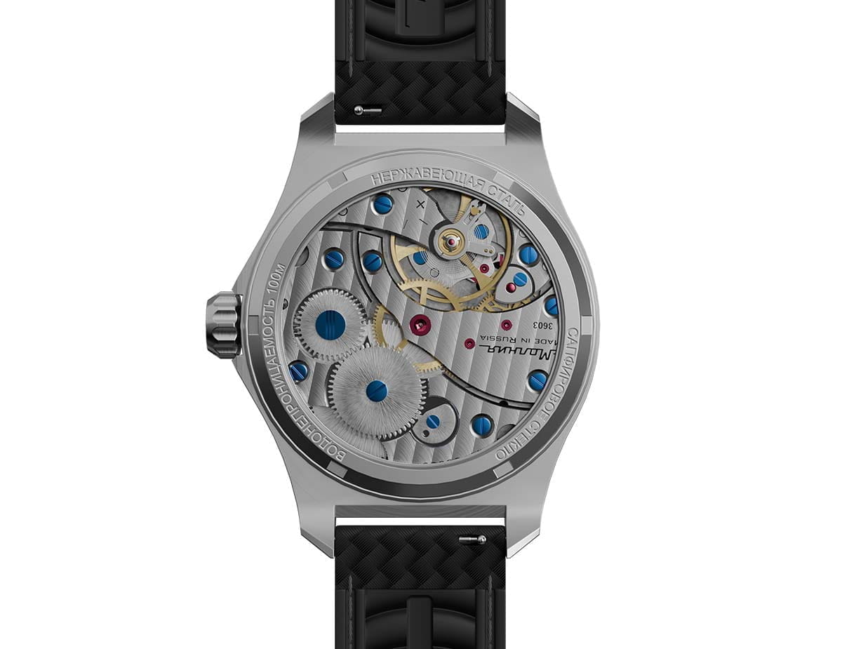 Мужские механические часы с ручным подзаводом — это аксессуар от легендарного бренда «МОЛНИЯ», созданный на Челябинском часовом заводе. Корпус диаметром 42 мм выполнен из нержавеющей стали 316L с зеркальной полировкой. БезельБезельВнешний ободок, закрепляющий стекло. В спортивных часах так называется поворотное кольцо с делениями на циферблате, выполняет роль таймера – замеряет отрезки времени на шкале. Неподвижный безель – элемент декора. Однонаправленно вращающийся безель на дайверских часах позволяет фиксировать моменты погружения и выныривания на поверхность. также выполнен из стали с зеркальной отделкой. Циферблат зелёного цвета оформлен индексами и стрелками. Малая секундная стрелка вынесена на позицию 9 часов. Стрелки и метки с люминесцентным покрытиемЛюминесцентное покрытиеПозволяет считывать показания времени в темноте. Производители наносят на стрелки, часовые индексы, безель или поверхность циферблата светонакопительный состав, дающий холодное свечение. Super-LumiNova, обеспечивающим хорошую читаемость в темноте. Циферблат защищён сапфировым стекломСапфировое стеклоПрочный и надёжный материал из кристалла сапфира синтетического происхождения, характеризующийся особой твёрдостью и устойчивостью к царапинам и повреждениям. с антибликовым покрытиемАнтибликовое покрытиеСлой оксида металла в 0,13-0,3 микрон, благодаря которому стекло часов не бликует и не отражает свет. Антибликовое покрытие уменьшает отражение света в 10 раз, обеспечивая отличную читаемость показателей циферблата.. Механизм — мануфактурный калибр 3603, собранный вручную, с запасом хода до 40 часов. Прозрачная задняя крышка позволяет наблюдать за работой механизма. Часы оснащены силиконовым ремешком чёрного цвета с классической пряжкой, а также системой быстрой замены. Водонепроницаемость 100 м позволяет использовать часы для плавания и повседневного ношения. Идеальный выбор для тех, кто ценит российское качество и традиции.