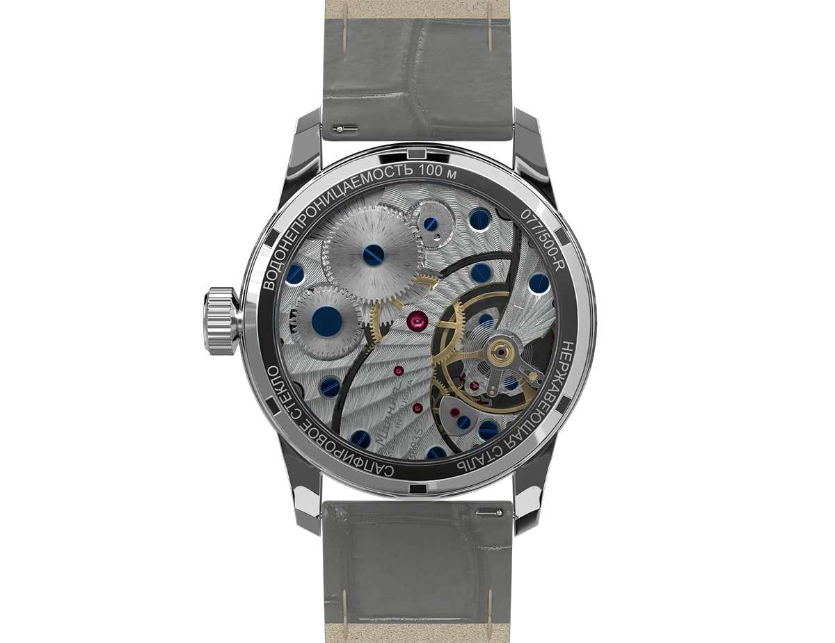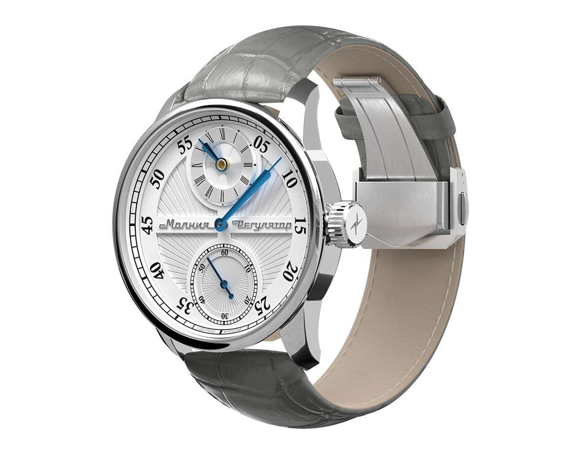 Мужские механические часы с ручным подзаводом — это аксессуар от легендарного бренда «МОЛНИЯ», созданный на Челябинском часовом заводе. Корпус диаметром 42 мм выполнен из нержавеющей стали. Циферблат оформлен индексами и стрелками. Малая секундная стрелка вынесена на отдельный субциферблат. Циферблат защищён сапфировым стекломСапфировое стеклоПрочный и надёжный материал из кристалла сапфира синтетического происхождения, характеризующийся особой твёрдостью и устойчивостью к царапинам и повреждениям.. Механизм — мануфактурный калибр 3603RS, полностью собранный вручную, с декорированными деталями, которые видны через прозрачную заднюю крышку. Часы оснащены кожаным ремешком серого цвета с раскладной застёжкойРаскладная застёжкаТакой тип застёжки используется только на браслетах из металла. Она никогда не раскрывается полностью, происходит разделение на 2 и более частей. Раскладывающая застёжка снизит вероятность потери часов к минимуму.. Водонепроницаемость 100 м позволяет использовать часы для плавания и повседневного ношения. Идеальный выбор для тех, кто ценит российское качество и традиции.