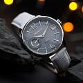 Мужские механические часы с ручным подзаводом — это аксессуар от легендарного бренда «МОЛНИЯ», созданный на Челябинском часовом заводе. Корпус диаметром 41 мм выполнен из нержавеющей стали 316L с зеркальной полировкой. Циферблат серого цвета оформлен арабскими цифрами и стальными индексами. Малая секундная стрелка вынесена на позицию 9 часов, окошко даты расположено в положении 3 часов. Циферблат защищён сапфировым стекломСапфировое стеклоПрочный и надёжный материал из кристалла сапфира синтетического происхождения, характеризующийся особой твёрдостью и устойчивостью к царапинам и повреждениям.. Механизм — мануфактурный калибр 3605, собранный вручную, с запасом хода до 40 часов. Прозрачная задняя крышка позволяет наблюдать за работой механизма. Часы оснащены кожаным ремешком белого цвета с раскладной застёжкойРаскладная застёжкаТакой тип застёжки используется только на браслетах из металла. Она никогда не раскрывается полностью, происходит разделение на 2 и более частей. Раскладывающая застёжка снизит вероятность потери часов к минимуму. и системой быстрой замены. Водонепроницаемость 100 м позволяет использовать часы для плавания и повседневного ношения. Идеальный выбор для тех, кто ценит российское качество и традиции.