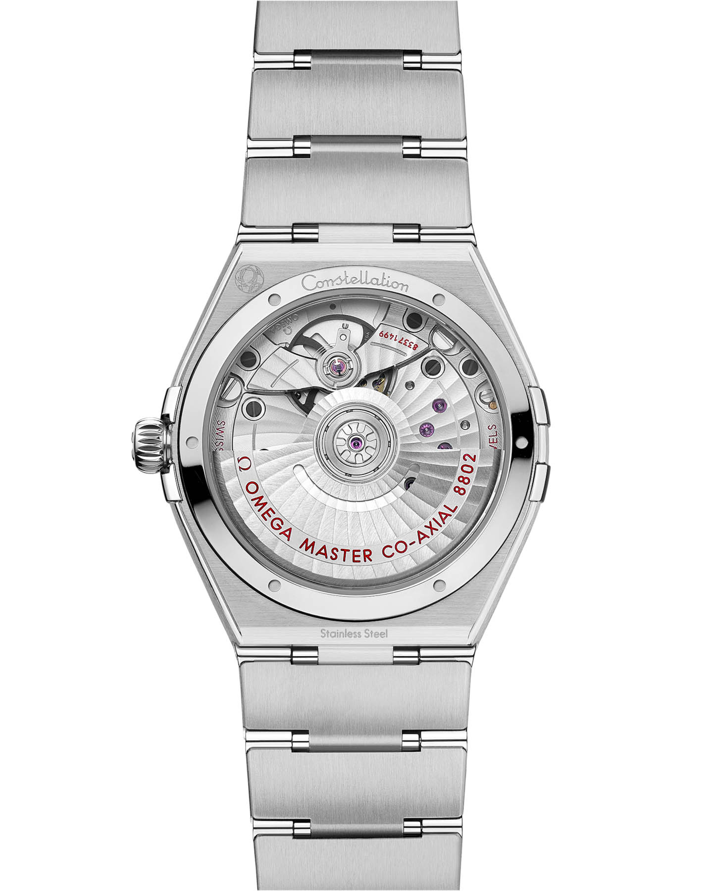 , а малый секундный циферблат и центральная минутная дорожка обведены кольцами. Часы представлены на легендарном браслете-монограннике с застежкой-бабочкой и удобной регулировкой хода. Часы приводятся в движение коаксиальным хронометром OMEGA 8802 Master Chronometer, который виден через куполообразное сапфировое стеклоСапфировое стеклоПрочный и надёжный материал из кристалла сапфира синтетического происхождения, характеризующийся особой твёрдостью и устойчивостью к царапинам и повреждениям., устойчивое к царапинам.
