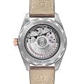Omega Seamaster Aqua Terra выполнены в симметричном корпусе из нержавеющей стали и 18K Sedna™ золота с завинчивающейся задней крышкой, украшенной волновым узором. Циферблат дополнен окошком даты на 6 часах и оформлен в виде рисунка, вдохновлённого морскими мотивами. Стрелки и метки выполнены из 18K Sedna™ золота и оснащены люминесцентным покрытиемЛюминесцентное покрытиеПозволяет считывать показания времени в темноте. Производители наносят на стрелки, часовые индексы, безель или поверхность циферблата светонакопительный состав, дающий холодное свечение. для лучшей читаемости в темноте. Индексы выполнены в форме корпусов парусников — деталь, подчёркивающая морское наследие коллекции. Калибр Omega 8800 сертифицирован как Master Chronometer — гарантия высочайшей точности и устойчивости к магнитным полям. Запас хода составляет 55 часов. Защиту циферблата обеспечивает сапфировое стеклоСапфировое стеклоПрочный и надёжный материал из кристалла сапфира синтетического происхождения, характеризующийся особой твёрдостью и устойчивостью к царапинам и повреждениям. с антибликовым покрытиемАнтибликовое покрытиеСлой оксида металла в 0,13-0,3 микрон, благодаря которому стекло часов не бликует и не отражает свет. Антибликовое покрытие уменьшает отражение света в 10 раз, обеспечивая отличную читаемость показателей циферблата. с обеих сторон. Водозащита позволяет использовать часы в воде без риска повреждения. Часы установлены на кожаный ремешок. Это сочетание премиального качества, технологичности и классического дизайна.