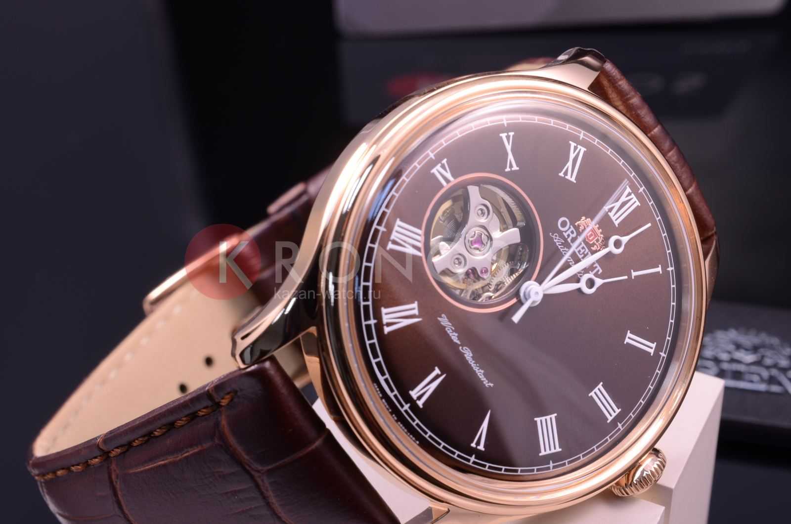 Orient Envoy Classic Open Heart AG00001T — это элегантные часы с утонченным классическим дизайном и надежным механизмом. Корпус диаметром 43 мм выполнен из нержавеющей стали с PVD-покрытиемPVDУльтратонкое покрытие наносится в технике вакуумного напыления, сочетает в себе нитрид титана особой прочности со слоем золота или оксида хрома. Несёт в себе декоративную или защитную функцию. розового цвета, что придаёт модели изысканный и стильный вид. Коричневый циферблат украшен римскими цифрами и тонкими стрелками, обеспечивающими отличную читаемость. Окошко "Open Heart" на отметке 9 часов позволяет наблюдать за работой механизма. Защитное минеральное стеклоМинеральное стеклоМинеральное стекло представляет собой искусственно выращенный минерал кварца. Такое стекло отличается особой устойчивостью к повреждениям и царапинам. Уступает по некоторым качествам сапфировому стеклу. с выпуклой формой добавляет часам винтажную эстетику. Внутри установлен автоматический механизм Orient калибра F6T22 с функцией ручного подзавода и стоп-секунды, обеспечивающий точность и запас хода до 40 часов. Модель укомплектована коричневым кожаным ремешком с тиснением под крокодила, а классическая застёжка обеспечивает комфортное и надежное ношение. Водонепроницаемость 50 метров защищает часы от брызг и кратковременного контакта с водой, делая их отличным выбором для повседневного использования.