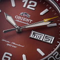 Часы Orient Mako III RA-AA0820R — это сочетание элегантного дизайна и высоких технологий. Корпус из нержавеющей стали диаметром 41,8 мм защищён Сапфировым стекломСапфировое стеклоПрочный и надёжный материал из кристалла сапфира синтетического происхождения, характеризующийся особой твёрдостью и устойчивостью к царапинам и повреждениям., обеспечивающим защиту от царапин и долговечность. Бордовый циферблат с метками и стрелками, покрытыми Люминесцентным составомЛюминесцентное покрытиеПозволяет считывать показания времени в темноте. Производители наносят на стрелки, часовые индексы, безель или поверхность циферблата светонакопительный состав, дающий холодное свечение., обеспечивает идеальную читаемость даже в условиях низкой освещенности. Однонаправленный БезельБезельВнешний ободок, закрепляющий стекло. В спортивных часах так называется поворотное кольцо с делениями на циферблате, выполняет роль таймера – замеряет отрезки времени на шкале. Неподвижный безель – элемент декора. Однонаправленно вращающийся безель на дайверских часах позволяет фиксировать моменты погружения и выныривания на поверхность. с двухцветной вставкой добавляет стильности и функциональности, что особенно полезно для дайвинга. Автоматический механизм Orient Calibre F6922 с функцией ручного завода и остановки секундной стрелки гарантирует точность и до 40 часов автономной работы. Браслет из нержавеющей стали оснащён раскладной застёжкой с фиксатором, обеспечивающей удобство и надёжность. Водонепроницаемость до 200 метров делает часы подходящими для подводных приключений, а окошко даты и дня недели на отметке «3 часа» добавляет удобства в повседневной жизни. Orient RA-AA0820R19B — это часы для тех, кто ценит стиль, функциональность и надежность.