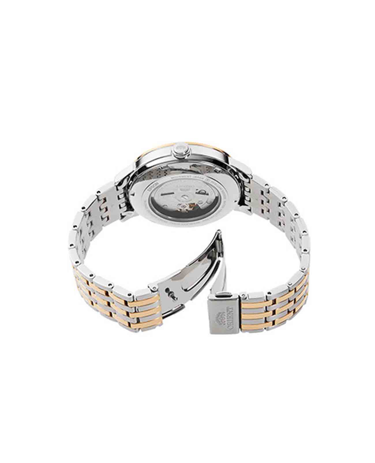 Класс водозащиты 50 метров обеспечит защиту от случайных брызг или капель дождя, хотя для плавания такие часы не рекомендованы. Браслет из нержавеющей стали с частичным PVD-покрытиемPVDУльтратонкое покрытие наносится в технике вакуумного напыления, сочетает в себе нитрид титана особой прочности со слоем золота или оксида хрома. Несёт в себе декоративную или защитную функцию. закреплен на раскладной застёжкеРаскладная застёжкаТакой тип застёжки используется только на браслетах из металла. Она никогда не раскрывается полностью, происходит разделение на 2 и более частей. Раскладывающая застёжка снизит вероятность потери часов к минимуму., что обеспечивает комфорт и безопасность при ношении.