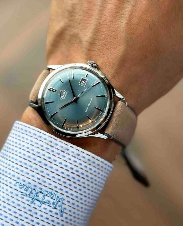 Мужские наручные часы Orient RA-AC0P03L из коллекции Bambino 4 поколения сочетают в себе классический дизайн и надежность современных технологий. Модель обладает круглым корпусом диаметром 42 мм, изготовленным из нержавеющей стали, что обеспечивает высокую устойчивость к внешним воздействиям. Ремешок выполнен из кожи с текстурой коричневого цвета, гарантирующей комфортное ношение. Голубой циферблат, выполненный по технологии Sunray, оснащен окном даты, что добавляет функциональности при ежедневном использовании. Для защиты используется минеральное стеклоМинеральное стеклоМинеральное стекло представляет собой искусственно выращенный минерал кварца. Такое стекло отличается особой устойчивостью к повреждениям и царапинам. Уступает по некоторым качествам сапфировому стеклу., обеспечивающее прочную защиту от царапин. Часы работают на японском автоматическом механизме с калибром F6724, который содержит 22 камня и обладает запасом хода до 40 часов. Также модель оснащена функцией stop-second, позволяющей точно остановить механизм для установки времени. Водонепроницаемость часов достигает стандартной повседневной защиты 30 м. (WR 30), что делает их подходящими для использования в различных условиях, однако не рекомендуется для плавания или занятий водными видами спорта.