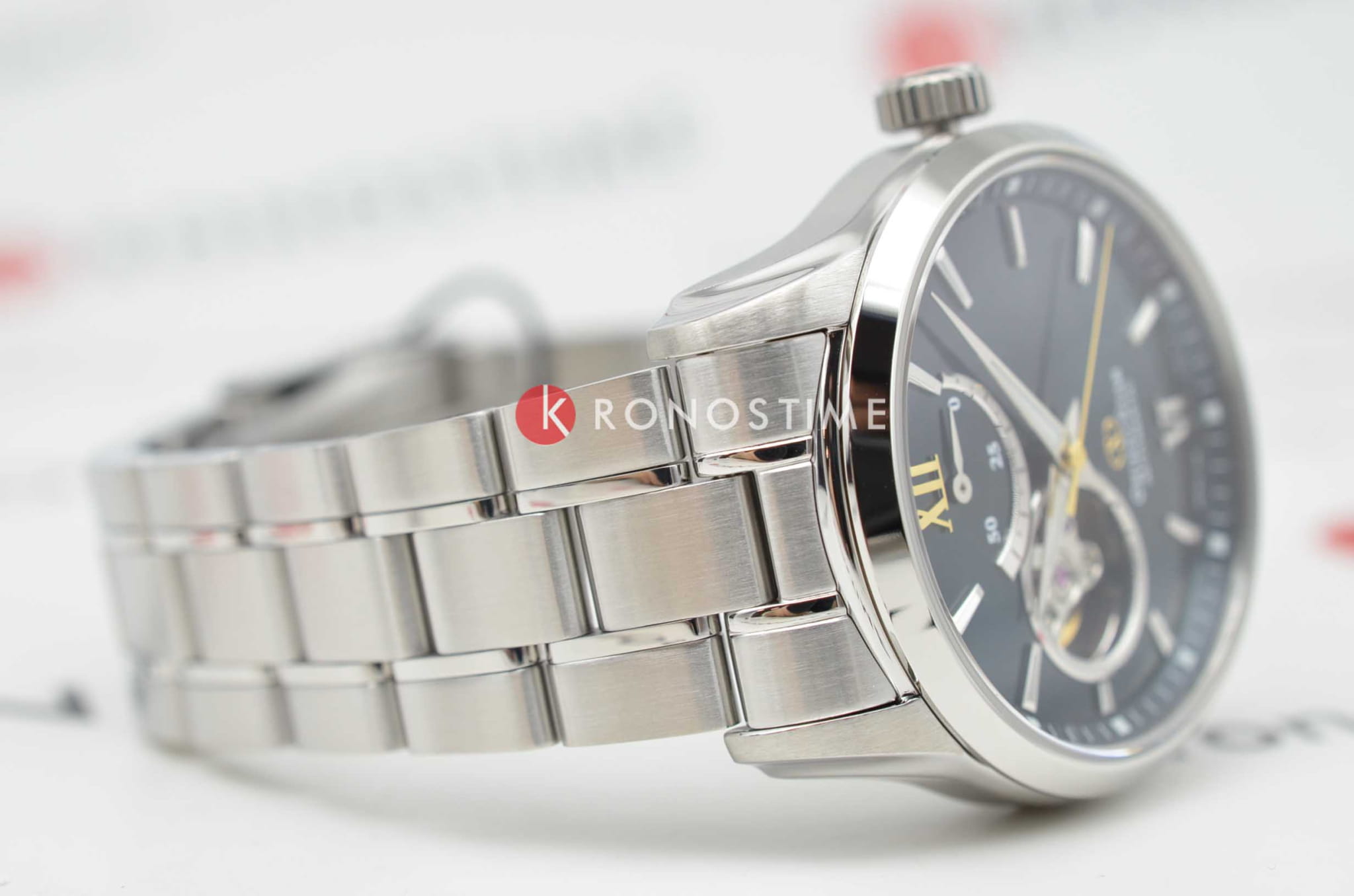 Мужские изысканные часы Orient Contemporary Semi-Skeleton RE-AT0003E — это стильное сочетание современного дизайна и часового мастерства. Корпус из нержавеющей стали с диаметром 39.3 мм защищён сапфировым стекломСапфировое стеклоПрочный и надёжный материал из кристалла сапфира синтетического происхождения, характеризующийся особой твёрдостью и устойчивостью к царапинам и повреждениям. с антибликовым покрытиемАнтибликовое покрытиеСлой оксида металла в 0,13-0,3 микрон, благодаря которому стекло часов не бликует и не отражает свет. Антибликовое покрытие уменьшает отражение света в 10 раз, обеспечивая отличную читаемость показателей циферблата., что обеспечивает отличную видимость и защиту от царапин. Особенностью этой модели является прозрачное окошко на циферблате, через которое можно наблюдать за работой сложного внутреннего механизма. Элегантные часы оснащены калибром F6R42. Элегантный браслет из нержавеющей стали с оснащён раскладной застёжкойРаскладная застёжкаТакой тип застёжки используется только на браслетах из металла. Она никогда не раскрывается полностью, происходит разделение на 2 и более частей. Раскладывающая застёжка снизит вероятность потери часов к минимуму., что обеспечивает удобство и надёжность. Эта изысканная модель имеет люминесцентное покрытиеЛюминесцентное покрытиеПозволяет считывать показания времени в темноте. Производители наносят на стрелки, часовые индексы, безель или поверхность циферблата светонакопительный состав, дающий холодное свечение. на стрелках и метках для отличной читаемости в темноте. Водозащита до 10 ATM позволяет использовать часы не только в повседневной жизни, но и при активности на воде. Orient Contemporary Semi-skeleton RE-AT0003E — это выбор для тех, кто ценит утончённость, стиль и высочайшее качество.