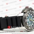 Мужские механические часы с автоподзаводом. Калибр механизма F6722 на 22 камнях. Частота 21 600 полуколебаний в час. Запас хода 40 часов. Центральные часовая, минутная и секундная стрелки. Апертура даты в позиции 3 часов. Синий циферблат. Люминесцентные стрелки и часовые индексы. Круглый корпус выполнен из нержавеющей стали с частичным черным PVD покрытием по безелю. Диаметр корпуса составляет 45 мм. Заводная головка с защитой. Черный каучуковый ремешок, стандартная застежка. Устойчивое к возникновению царапин сапфировое стекло с антибликовым покрытием. Водостойкость WR 200 (погружение с аквалангом).