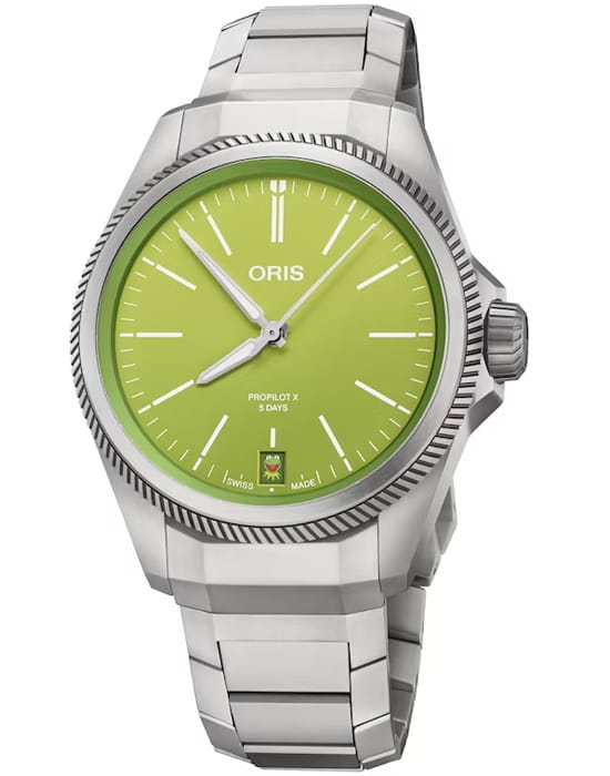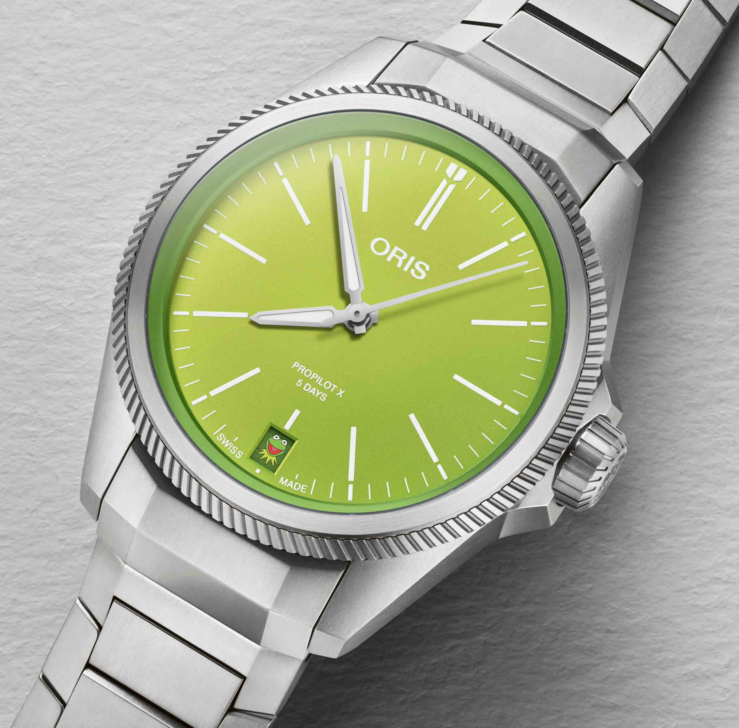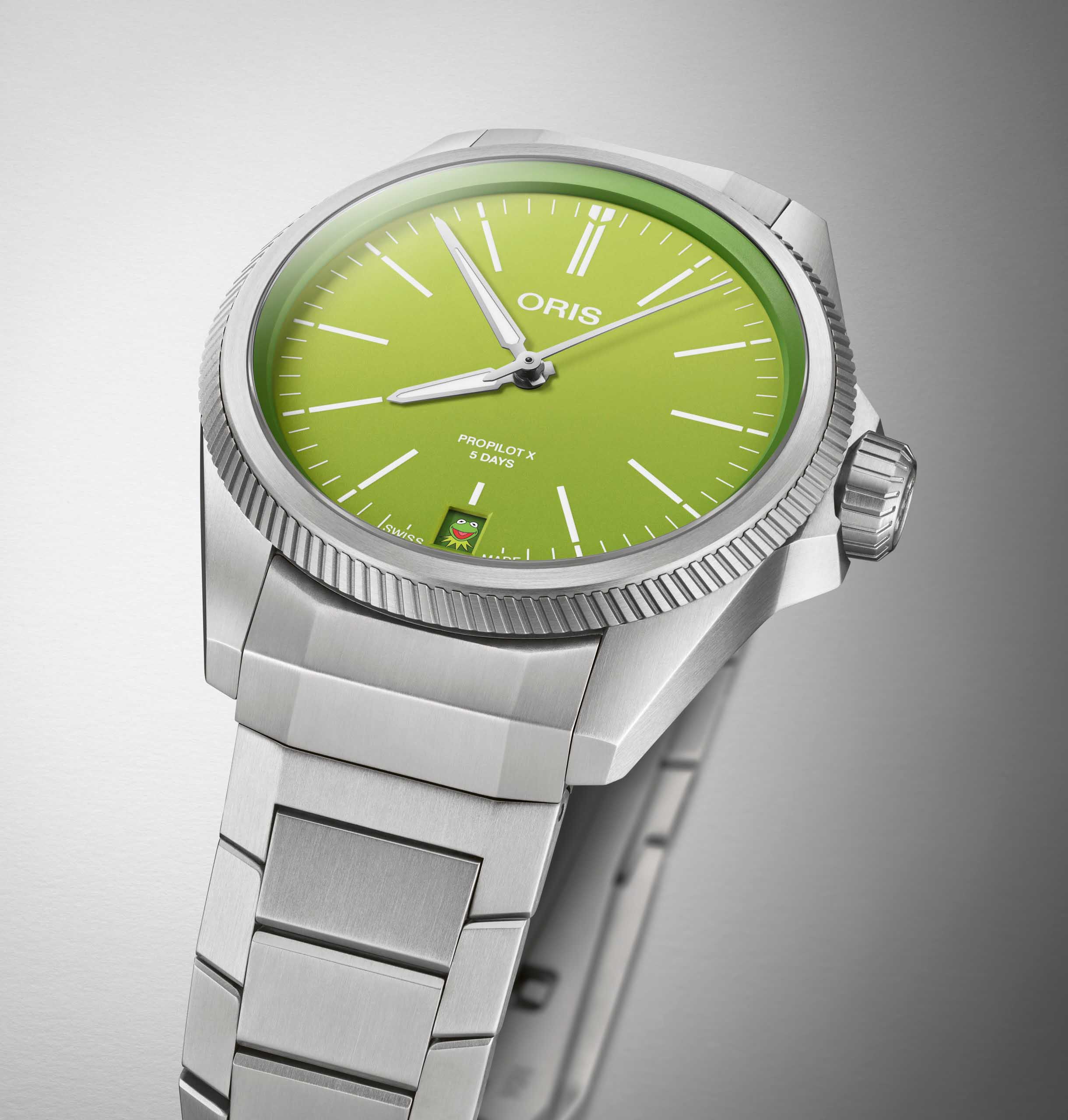 Часы Oris, такие как ProPilot X Kermit Edition, призваны дарить радость. Помимо веселого внешнего вида, это высокопроизводительный титановый ProPilot X, оснащенный калибром 400.