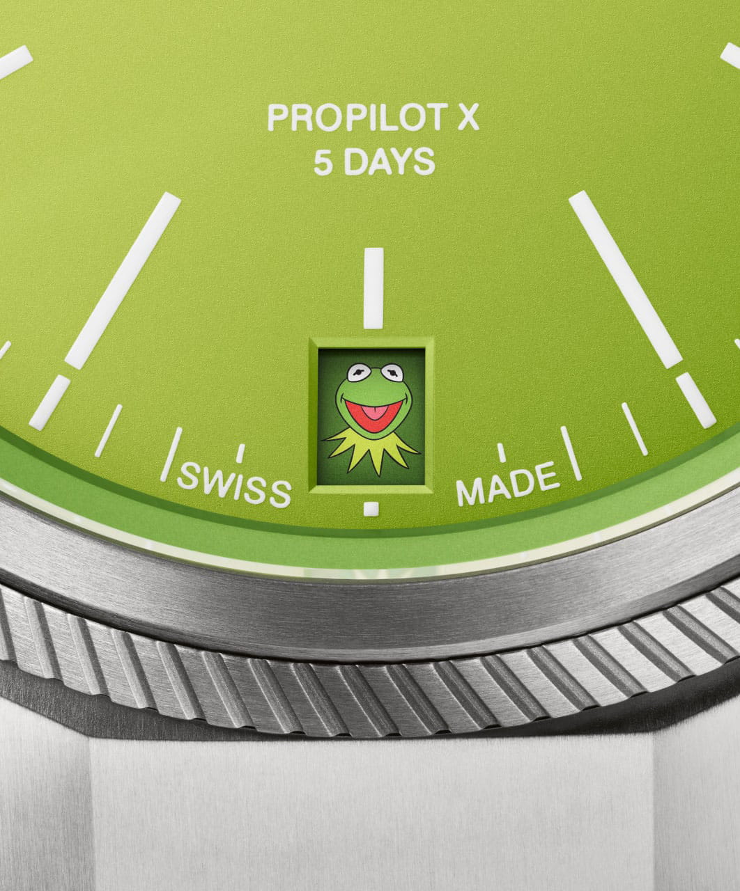 Встречайте ProPilot X Kermit Edition, созданный в сотрудничестве диснеевским лягушонком Кермитом. Каждое первое число месяца Кермит появляется в окошке даты, напоминая вам, что нужно найти немного времени для себя.