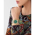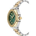 Philipp Plein Plein Lady Royal PWBDA0724 — это женские часы, сочетающие современный стиль и функциональность. Корпус диаметром 39 мм выполнен из нержавеющей стали с двухцветным PVD-покрытиемPVDУльтратонкое покрытие наносится в технике вакуумного напыления, сочетает в себе нитрид титана особой прочности со слоем золота или оксида хрома. Несёт в себе декоративную или защитную функцию., обеспечивающим долговечность и элегантный вид. Минеральное стеклоМинеральное стеклоМинеральное стекло представляет собой искусственно выращенный минерал кварца. Такое стекло отличается особой устойчивостью к повреждениям и царапинам. Уступает по некоторым качествам сапфировому стеклу. защищает циферблат от царапин, сохраняя его безупречное состояние. Зелёный циферблат с шестиугольной текстурой подчёркивает уникальный стиль бренда. Римские цифры и классические стрелки обеспечивают чёткое восприятие времени. Часы оснащены кварцевым механизмом, обеспечивающим точность хода. Водозащита до 5 ATM (50 метров) делает их идеальными для повседневного использования. Браслет из нержавеющей стали с двухцветным PVD-покрытиемPVDУльтратонкое покрытие наносится в технике вакуумного напыления, сочетает в себе нитрид титана особой прочности со слоем золота или оксида хрома. Несёт в себе декоративную или защитную функцию. гармонично сочетается с корпусом. Раскладная застёжкаРаскладная застёжкаТакой тип застёжки используется только на браслетах из металла. Она никогда не раскрывается полностью, происходит разделение на 2 и более частей. Раскладывающая застёжка снизит вероятность потери часов к минимуму. обеспечивает удобство и надёжность ношения. Ширина браслета 16 мм завершает элегантный образ.