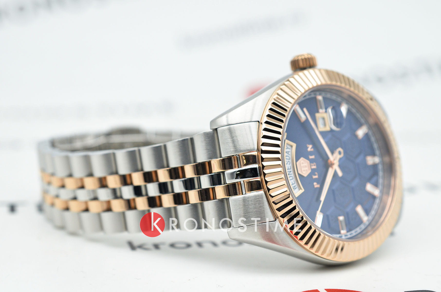 Мужские кварцевые часы Philipp Plein Date Superlative Gent PWPVA0524, кварцевый механизм с высокой точностью. Метки в виде штрихов. Минеральное стеклоМинеральное стеклоМинеральное стекло представляет собой искусственно выращенный минерал кварца. Такое стекло отличается особой устойчивостью к повреждениям и царапинам. Уступает по некоторым качествам сапфировому стеклу. устойчивое к мелким механическим повреждениям. Фирменная дизайнерская упаковка. БезельБезельВнешний ободок, закрепляющий стекло. В спортивных часах так называется поворотное кольцо с делениями на циферблате, выполняет роль таймера – замеряет отрезки времени на шкале. Неподвижный безель – элемент декора. Однонаправленно вращающийся безель на дайверских часах позволяет фиксировать моменты погружения и выныривания на поверхность. с IP-покрытиемIP-покрытиеМетод ионного напыления. Демонстрирует повышенную устойчивость к истиранию, окислению и химическим веществам. Под воздействием высокого давления и температуры около 1500°C молекулы металла надёжно соединяются с частицами корпуса часов.. Стрелки и метки с люминесцентным покрытиемЛюминесцентное покрытиеПозволяет считывать показания времени в темноте. Производители наносят на стрелки, часовые индексы, безель или поверхность циферблата светонакопительный состав, дающий холодное свечение.. Стальной браслет с частичным IP-покрытиемIP-покрытиеМетод ионного напыления. Демонстрирует повышенную устойчивость к истиранию, окислению и химическим веществам. Под воздействием высокого давления и температуры около 1500°C молекулы металла надёжно соединяются с частицами корпуса часов. на раскладной застёжкеРаскладная застёжкаТакой тип застёжки используется только на браслетах из металла. Она никогда не раскрывается полностью, происходит разделение на 2 и более частей. Раскладывающая застёжка снизит вероятность потери часов к минимуму.. Окошко дня недели находится в положении 12 часов.